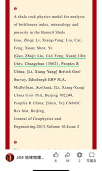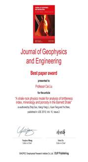 2024年7月12日,著名国际地球物理专业期刊《Journal of Geophysics and Engineering》近期颁布了“JGE 10年优秀论文”奖,本次评选基于文章下载、引用等综合指标,由编委会从过去十年该期刊发表的约1200余篇文章中选出9篇作为获奖文章。公司刘财教授团队发表的以郭智奇、李向阳、刘财、冯晅和沈野等人为作者的“A shale rock physics model for analysis of brittleness index, mineralogy and porosity in the Barnett Shale”一文获此殊荣;该文章发表于JGE期刊2013年第2期,截止目前引用率155次。该团队在国际上较早地开展了页岩储层岩石物理建模技术的研究,建立了综合考虑页岩矿物、有机质、孔隙度等复杂物性及结构特征对应的弹性及力学参数的定量表征方法,为非常规油气储层地震岩石物理技术的发展做出了贡献;引领着计算岩石物理学的发展;在此基础上,科研团队十年以来在非常规油气储层地震岩石物理领域开展了持续系统的研究,取得了系列成果。