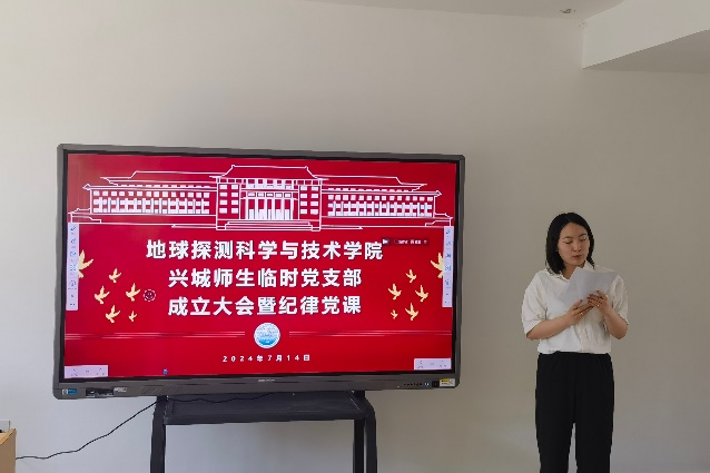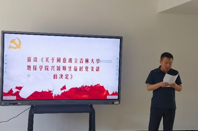 会上,公司党委副书记兼副经理姜宇航宣读了《关于同意成立永利yl23411永利yl23411兴城师生临时党支部的决定》,由姜宇航担任支部书记,测绘专业带队教师丁庆任纪检委员,本科生辅导员王洪宇任组织委员,地信专业带队教师蒋立军任宣传委员。