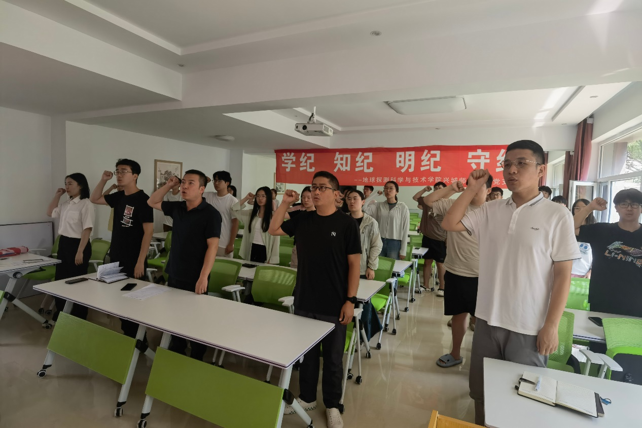 最后,由支部书记姜宇航领誓,兴城师生临时党支部35名党员共同重温入党誓词。按照公司教学计划安排,兴城实习于8月中旬结束,为期40余天。期间,支部将按照公司党纪学习教育相关要求,结合生产、教学实习内容,开展主题党课、专业座谈、专业教师讲授野外实习微党课等系列主题活动,确保学习实习同步进行,各项工作取得实质性成效,让“党旗在山谷中高高飘扬”。