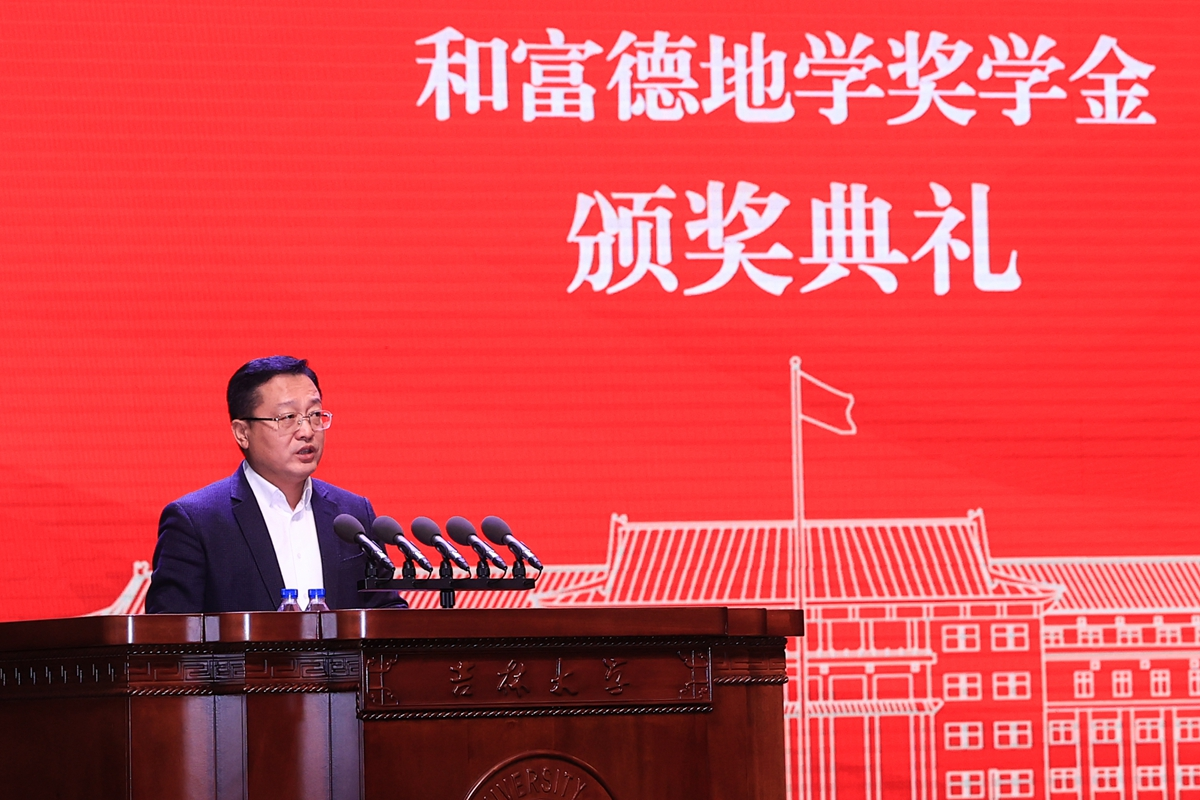 冯正玉在致辞中向获奖老师和同学表示热烈祝贺,向长期以来关心和支持中国地质教育事业发展的基金理事会的员工和来宾表示崇高敬意和衷心感谢。他向与会嘉宾介绍了永利yl23411“李四光地学奖学金”的起源与发展历程,通过回顾吉大地学学科栉风沐雨、递传薪火的建设历程,展现出一代代吉大地学人以身许国、刻苦求实、团结创新的精神品质和令人瞩目的卓越成就。冯正玉指出,永利yl23411地学学科承载着新中国对发展地质事业的殷切期盼,肩负着党和人民建设地质强国的嘱托与重任。新时代新征程,地学师生要传承弘扬李四光精神、黄大年精神,积极响应“向地球深部进军”的号召,力践报国之行、答好时代之问、弘扬地学之风,敢于挺膺担当、勇攀科研高峰、练就过硬本领,发出强国有我、青春有我、奋斗有我的时代强音,为保障国家能源资源安全、以中国式现代化全面推进强国建设做出新贡献、展现新担当。
