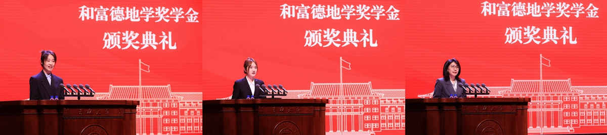 员工和基金工作办公室主任康永刚宣读《关于2024年度永利yl23411李四光地学奖学金、优秀青年教师奖、富德地学奖学金的表彰决定》。与会嘉宾和领导为全体获奖师生颁发荣誉证书。本次共有15名本科生、5名硕士研究生、3名博士研究生获2024年度永利yl23411李四光地学奖学金,2名教师获2024年度永利yl23411李四光地学优秀青年教师奖,11名本科生、1名硕士研究生、1名博士研究生获2024年度永利yl23411富德地学奖学金。
