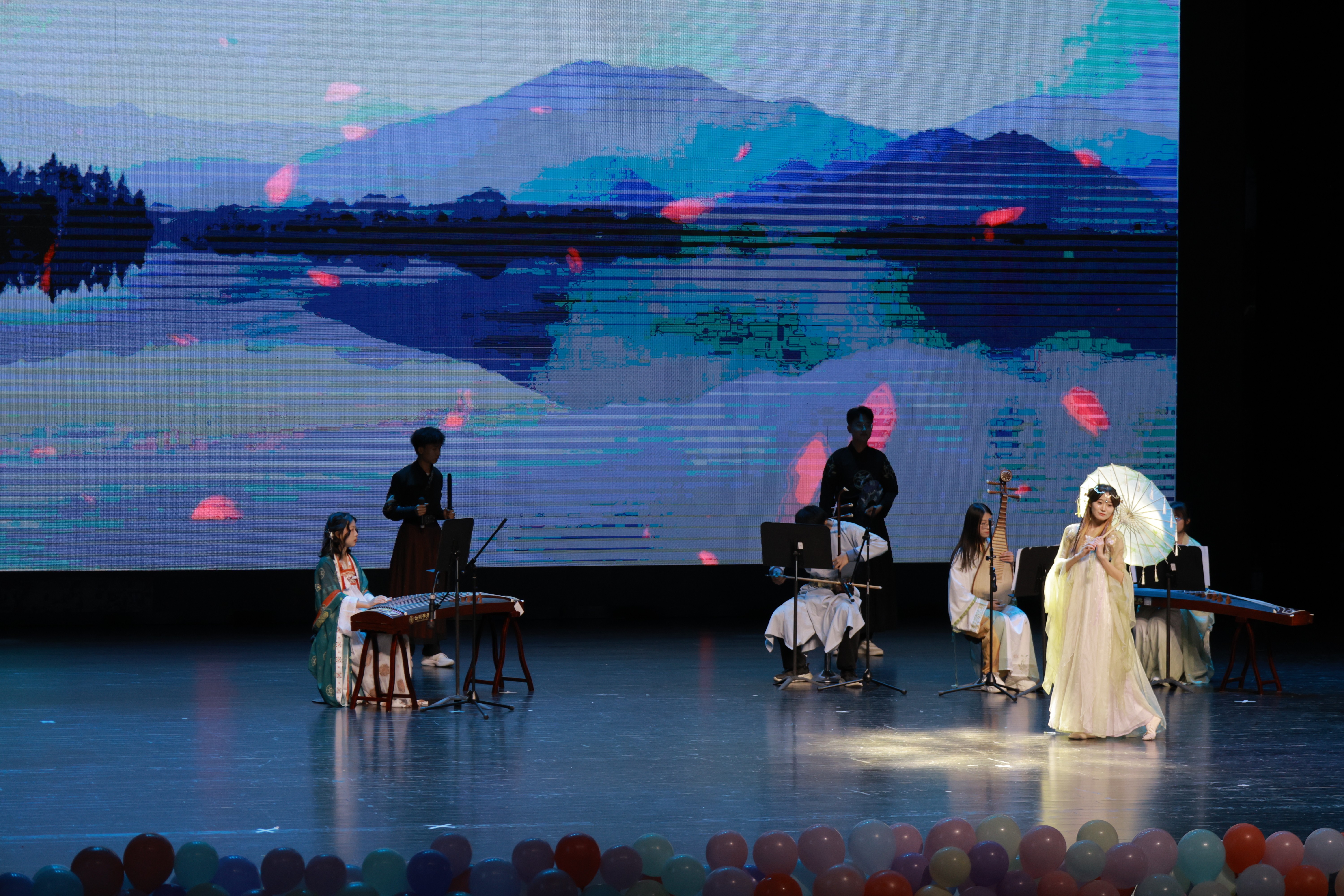 在“青春”篇章中,乐队歌曲《花海》《至少还有你》,歌声如梦醉人心,观众随着音乐摇摆沉浸其中;舞蹈串烧《矿物飞舞》用充满节奏感的舞步,将全场气氛再次点燃;民乐演奏歌曲《琵琶行》巧妙将古典与现代交融,带领观众穿越时空;情景音乐剧《初阳朝序》,生动形象地展现了新生入学后“我与吉大的100天”。