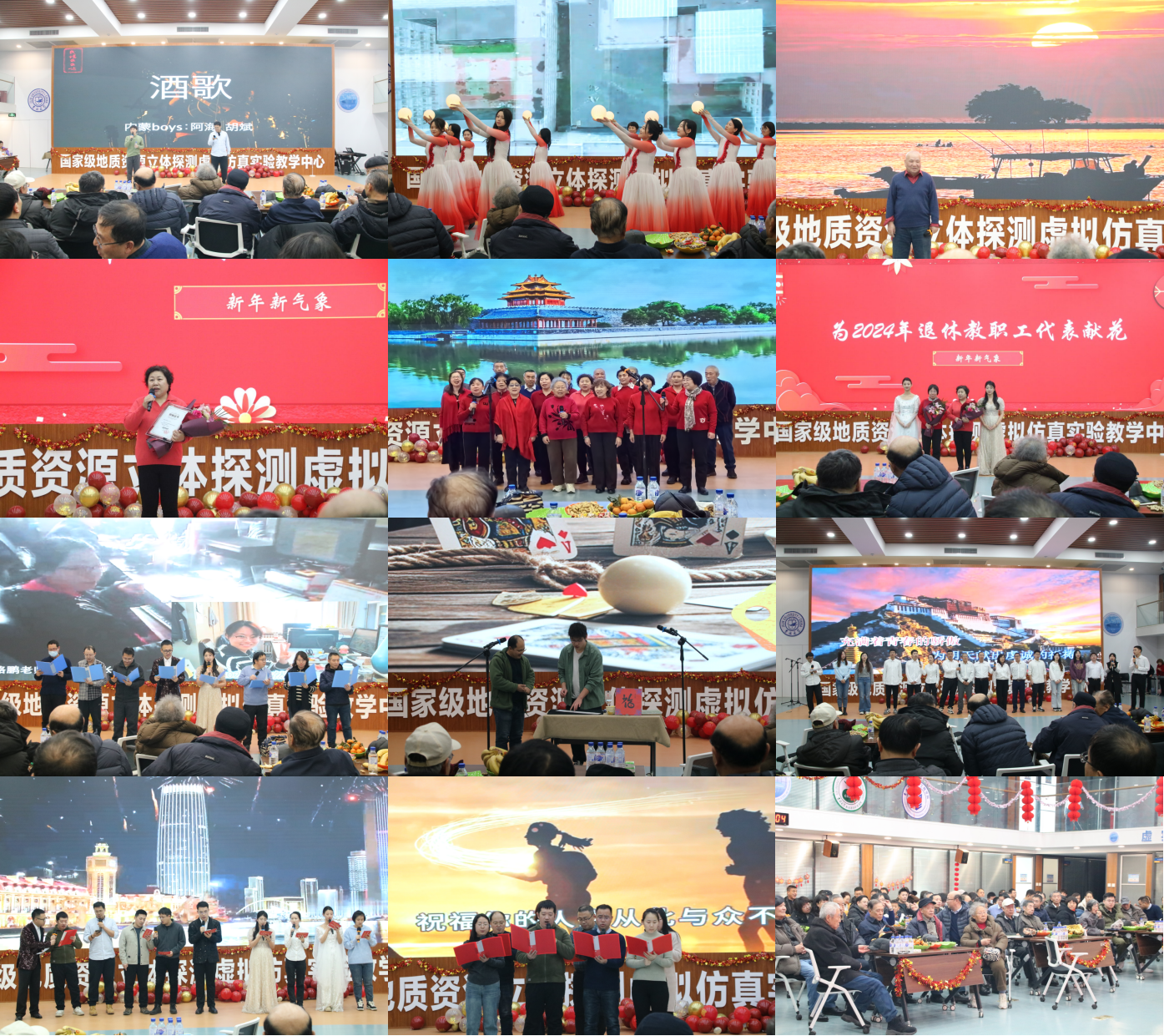 员工代表为大家带来了精彩的魔术表演,与台下的互动活跃了现场气氛;全体离退休教师以饱满的热情、嘹亮的嗓音带来合唱《勘探队员之歌》,展现老一辈地探人的精神面貌;测绘工程系和地球化学系分别为大家带来合唱《明天会更好》和《真心英雄》,用歌声传递力量,用旋律表达情感;最后,联欢会在新入职教职工的合唱《相亲相爱》中圆满落下帷幕。
