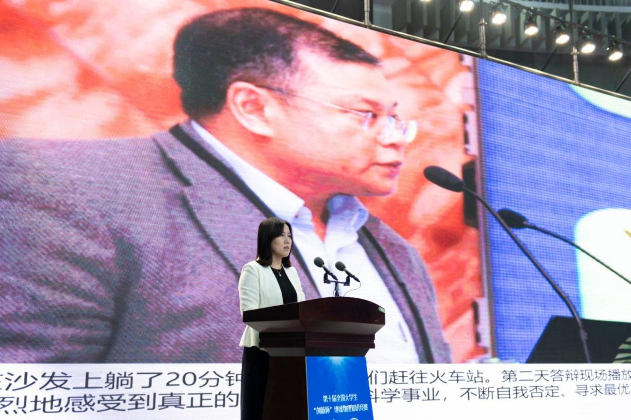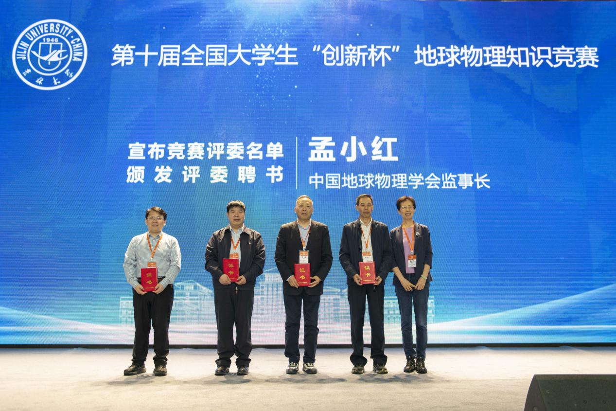 中国地球物理学会监事长孟小红宣布竞赛评委名单,并为评委代表颁发聘书。