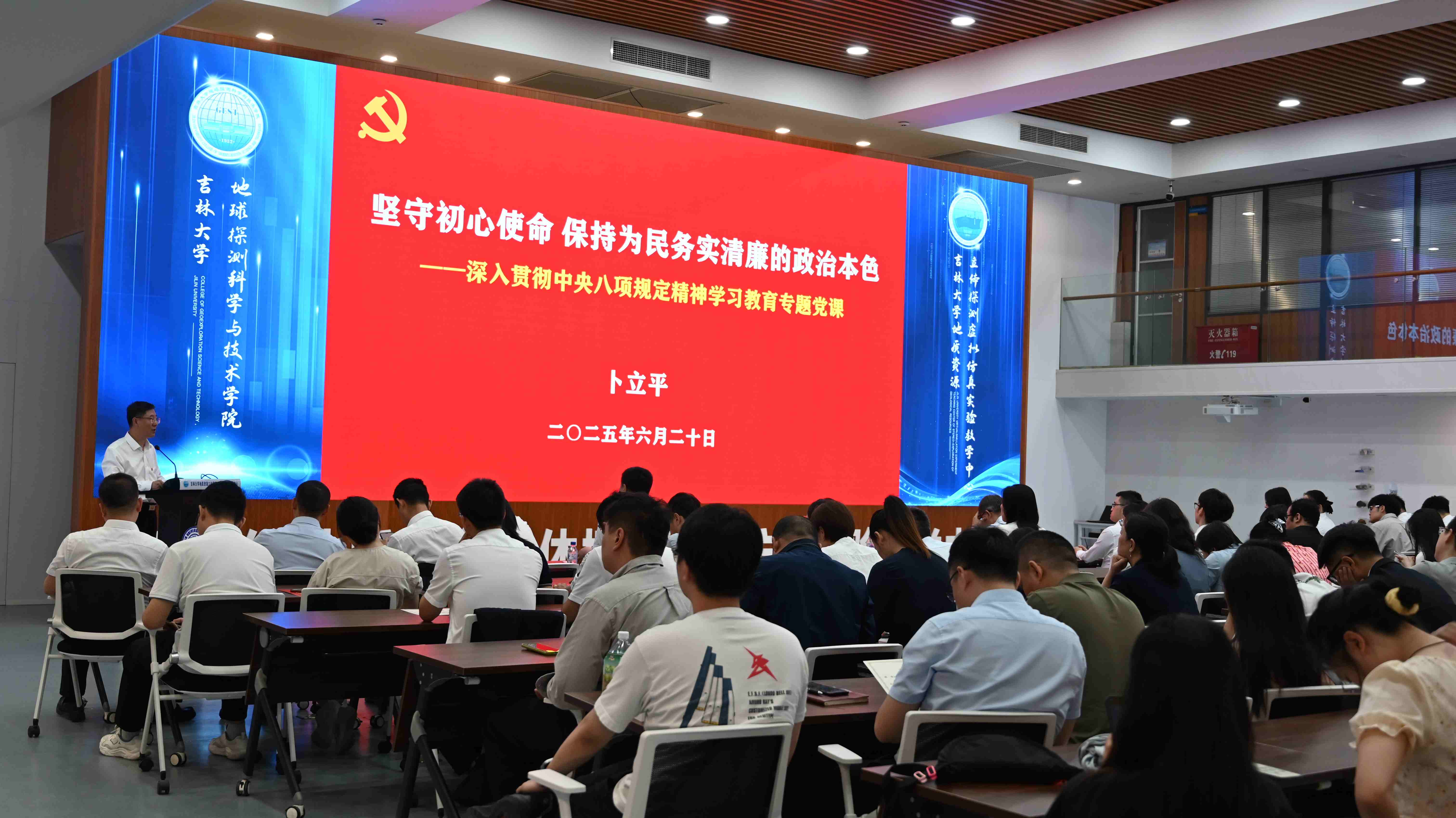 卜立平系统梳理了党的十八大以来主题教育学习目的和深远意义,强调全面从严治党永远在路上,党的自我革命永远在路上,作风建设永远在路上。他围绕深刻领会八项规定精神学习教育的政治意义和现实意义,坚持学查改一体推进学习教育见行见效,在实践中彰显为民务实清廉政治本色等三个方面进行了系统阐述。他表示,深入贯彻党的八项规定精神学习教育以来,公司坚持结合融入、开门学习教育,将学习习近平总书记关于加强党的作风建设的重要论述与黄大年同志先进事迹贯通融合,各项事业呈现出良好的发展态势。希望全公司党员师生切实把思想和行动统一到党中央的决策部署上来,以更加坚定的决心、更加有力的措施,持之以恒地抓好作风建设,为公司、公司的发展夯实坚强的思想保障、政治保障。卜立平寄语全体毕业生党员,将个人理想融入国家发展大局,将专业所学转化为报国行动,以“功成不必在我,功成必定有我”的胸怀,在智能探测的战场上攻坚克难,在地球探测科学技术的前沿阵地开拓创新,踔厉奋发,笃行不怠,共同为我国地学事业发展和国家繁荣富强贡献力量。