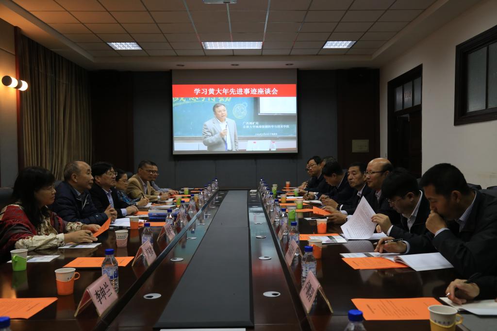 座谈会上,广西地勘局和广西大学的参会嘉宾结合黄大年先进事迹所学所想纷纷发表感言。广西地勘局第六地质队党委书记黄礼初介绍了“广西机关党员党性教育基地黄大年同志事迹展馆”的建设情况;广西地勘局人事处副处长黃健芬介绍了地勘局人才需求情况。