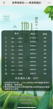 世界地球日线上宣传周活动包含线上科普宣传以及世界地球日有奖拼图游戏推广两部分。围绕 “人类与新冠状病毒”、“人类与动物”、“人类与植物”等主题开展,线上科普宣传发布了“我们属于大自然”、“绿色开采、采矿无痕”等相关科普视频、音乐及图文介绍;世界地球日有奖拼图是一款非常受用户欢迎的游戏,上线短短两天时间,参与用户达到了2200余人,在大一、大二员工中推广后,部分电脑爱好者产生了浓厚的兴趣,编写了各种脚本,与技术团队进行了三次线上攻防对抗,真正实现了在科普中学习、在学习中游戏、用游戏带动兴趣、用兴趣驱动学习的目标。