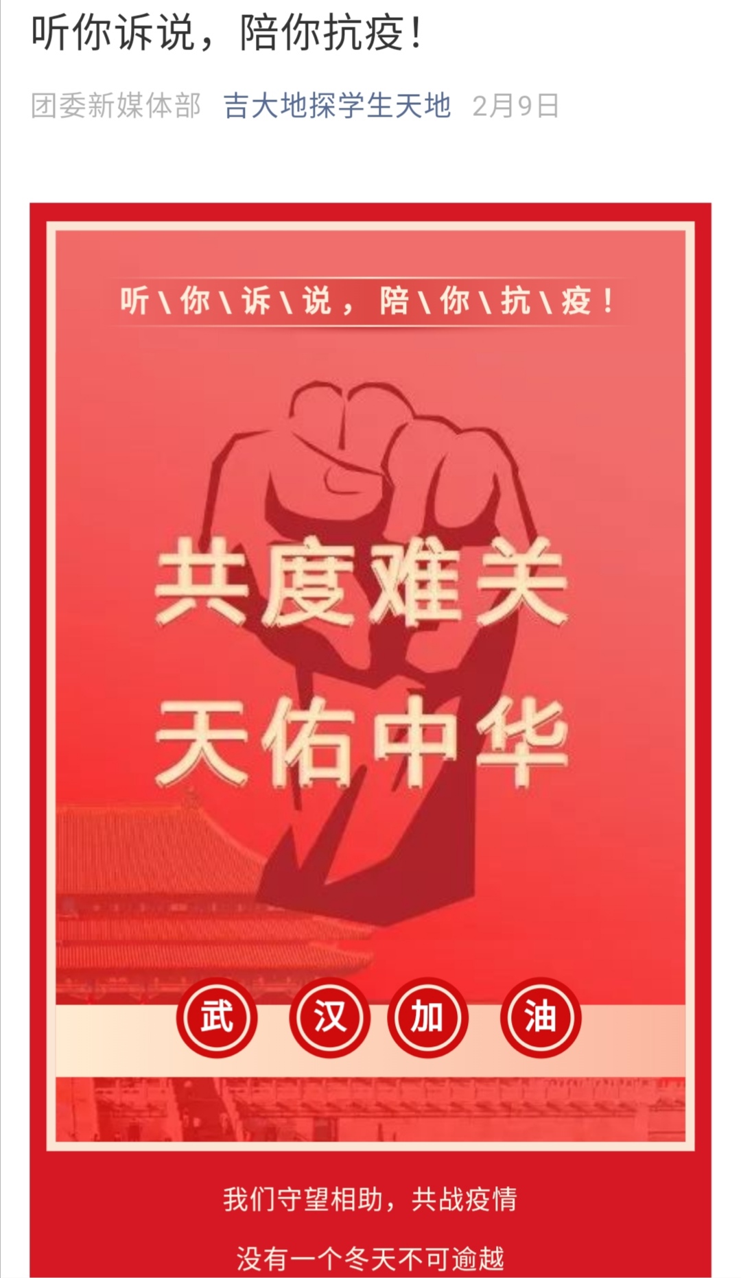 疫情发生以来,公司及时向每一位员工转发《致全校同学的一封信》、《永利yl23411新型冠状病毒感染的肺炎疫情防控时期员工行为规范》等一系列重要通知和防疫知识,累计发布“共同战疫”主题系列微信推送332条,对全院员工开展疫情防控宣传教育工作,坚定员工战胜疫情的信心。