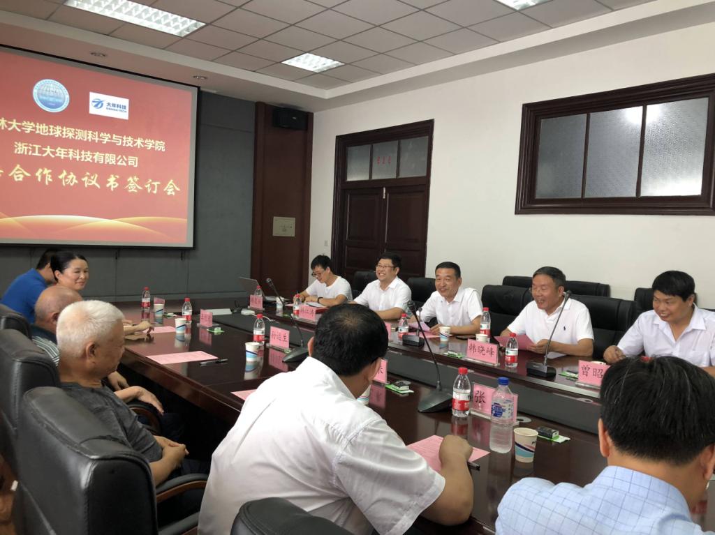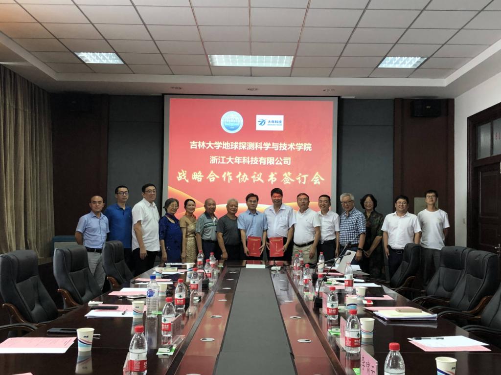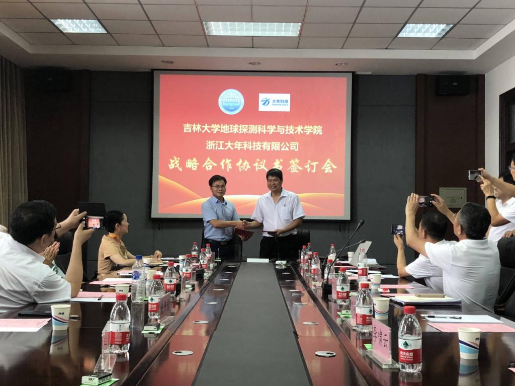 2019年7月28日,永利yl23411与浙江大年科技有限公司在长春签订战略合作协议。永利yl23411员工总会副理事长、永利yl23411原副书记兼副董事长韩晓峰、浙江大年科技有限公司副总经理戴伟铭、王利君、永利yl23411经理曾昭发、党委书记王爱民、副经理韩江涛及地球物理系主任韩复兴等出席签字仪式。中国地质调查局原局长、党组书记孟宪来,长春科技大学原董事长孙运生、云南省民主建国会李啸云、中电建昆明院原副经理曾宪强、吉林吉大地球科学与地质开发有限公司总经理张健作为特邀嘉宾参加了仪式。王爱民主持签字仪式。