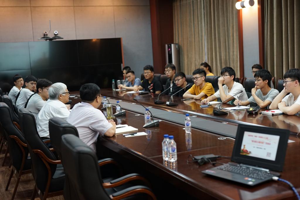 座谈会一开始,高老师以幽默轻松的语言引入,介绍了在其做深地震反射的研究经历中遇到的种种难题与趣事,后以问答的形式为员工们答疑解惑。随着时间一点一点过去,讨论氛围逐渐热闹起来,同学们的问题如雨后春笋般接连冒出来,高老师用自己几十年的经验和人生阅历给同学们进行指点,同学们都开拓了视野,增长了见识。整个讨论的内容围绕着家国情怀和人生梦想展开。高老师强调作为985大学的优秀学子应该有为国家做贡献的觉悟,应该懂得为中国的发展贡献力量。另外同学们应该积极提高身体素质和知识能力,为应对将来时代的发展做好准备。