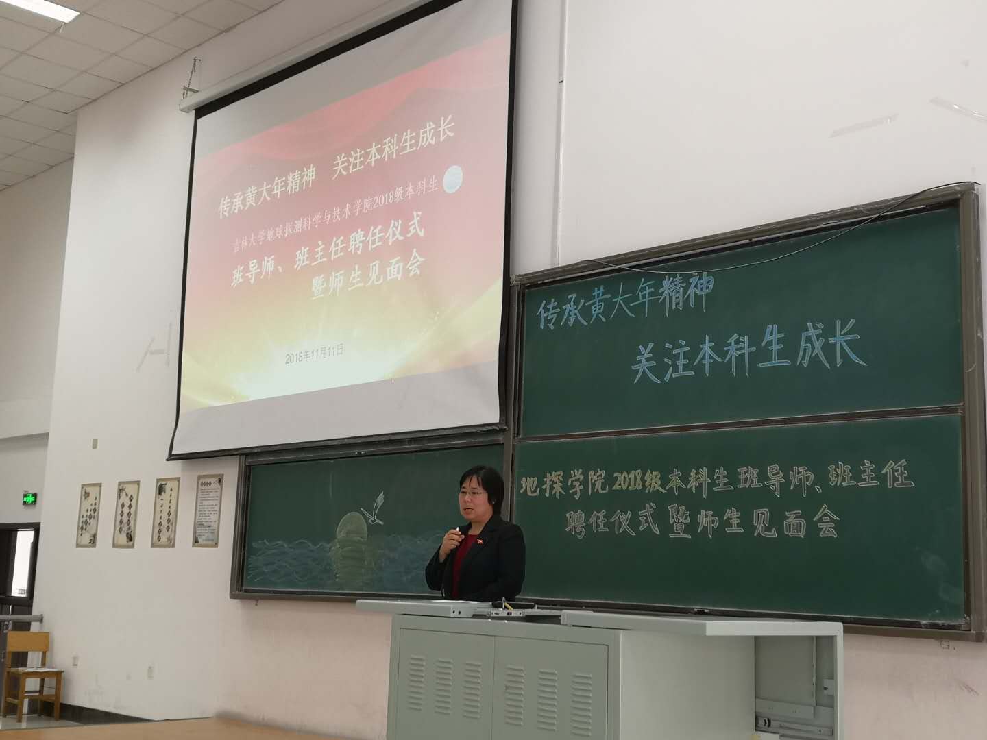 2018年11月11日上午10:30,永利yl234112018级本科生班导师、班主任聘任仪式暨师生见面会在中心校区李四光楼二阶隆重召开,公司党委书记高淑贞,永利yl23411教授、博士生导师殷长春,副经理、公司党委委员牛雪峰,副经理、公司党委委员韩江涛,永利yl23411教学委员会主任、博士生导师潘保芝,2018级本科生指导教师和兼职班主任近二十名教师以及全体2018级员工参加了聘任仪式,聘任仪式由公司党委副书记宋宏宇主持。