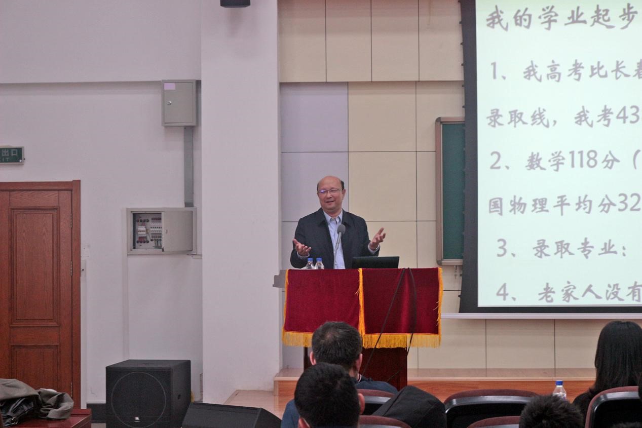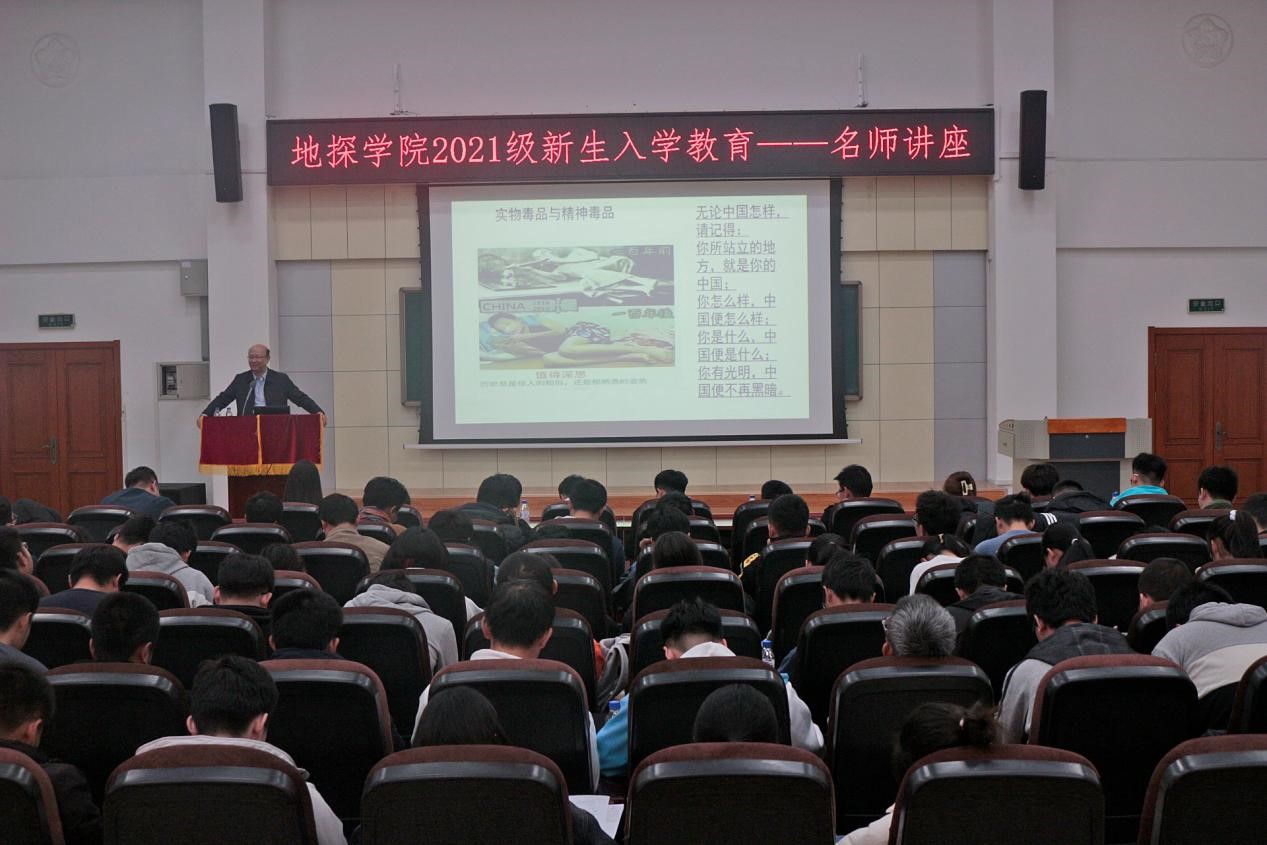 刘财教授以“我与你们一样,也曾彷徨、迷茫和困惑”为题,从个人求学时期的困惑、自身的成长发展经历、如何适应老员工活以及如何理解专业等维度进行了系统阐述。他以“科学无国界、科学家有祖国”为切入点,阐释了黄大年精神的内涵。结合多年的教学实践经验和思考,他提出“要用先进的理念,培养现在的员工,支撑起员工的明天”,并向同学们分享了“研、严、妍”的教育理念。