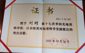 2021年10月26日上午,第十七次李四光地质科学奖颁奖会在北京举行。永利yl23411刘财教授荣获第十七次李四光地质科学奖,以表彰其对地球科学发展做出的突出贡献。