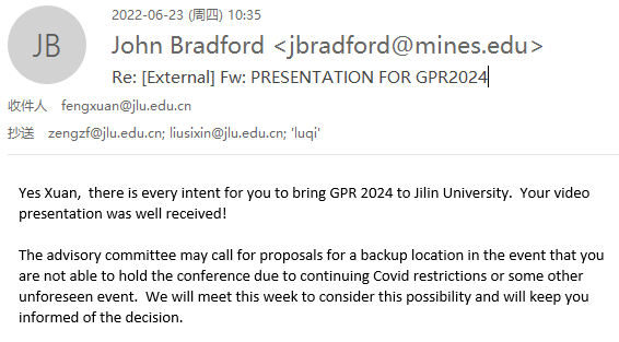 美国时间6月16日下午,在美国科罗拉多举办的第19届探地雷达国际会议上,经过探地雷达咨询委员会投票选举,公司成功申办第20届探地雷达国际会议(20th international conference on ground penetrating radar,GPR2024)。