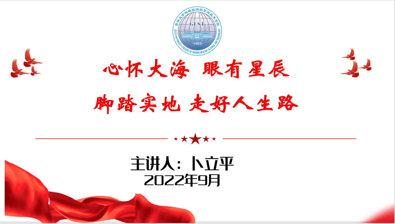 卜立平以“心怀大海,眼有星辰,脚踏实地,走好人生路”为主题进行授课。他带领同学们回顾了永利yl23411传承红色基因、赓续红色血脉的发展历史,讲述了以战略科学家黄大年教授等为代表的一代代地学人、地探人,踏遍青山、甘于奉献、不懈努力的先进事迹,和他们坚持在星天地海、智能探测领域所做出的突出贡献,引导同学们坚定理想信念,勇于拼搏奋斗,努力做更好的自己。他鼓励同学们勤于思考、勤于实践、创新创造,把自己的理想抱负和人生规划同祖国的建设发展、同中华民族的命运紧密联系在一起,学思践悟,积极做社会主义核心价值观的坚定信仰者、积极传播者、模范践行者,砥砺前行。