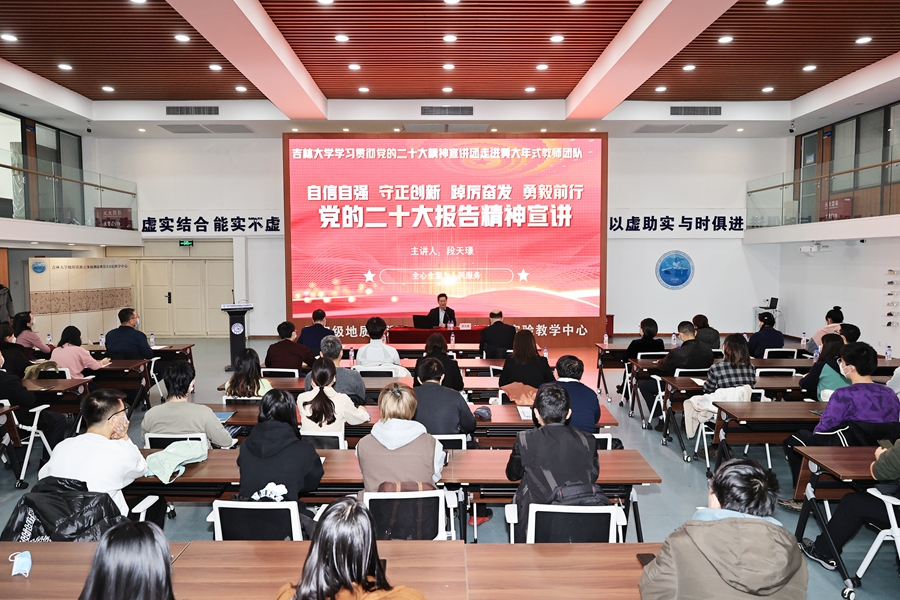 段天璟用深厚的理论知识和丰富的实践经验,以“自信自强 守正创新 踔厉奋发 勇毅前行”为题,全面系统地阐释了党的二十大报告,并结合实际,重点围绕“实施科教兴国战略、强化现代化建设人才支撑”“推进文化自信自强,铸就社会主义文化新辉煌”进行了深入解读。段天璟用历史和现实、理论和实践、整体和局部相结合的方式将二十大报告描绘的宏伟蓝图生动、立体地展现出来,理论与思维碰撞的火花弥漫在会场中。