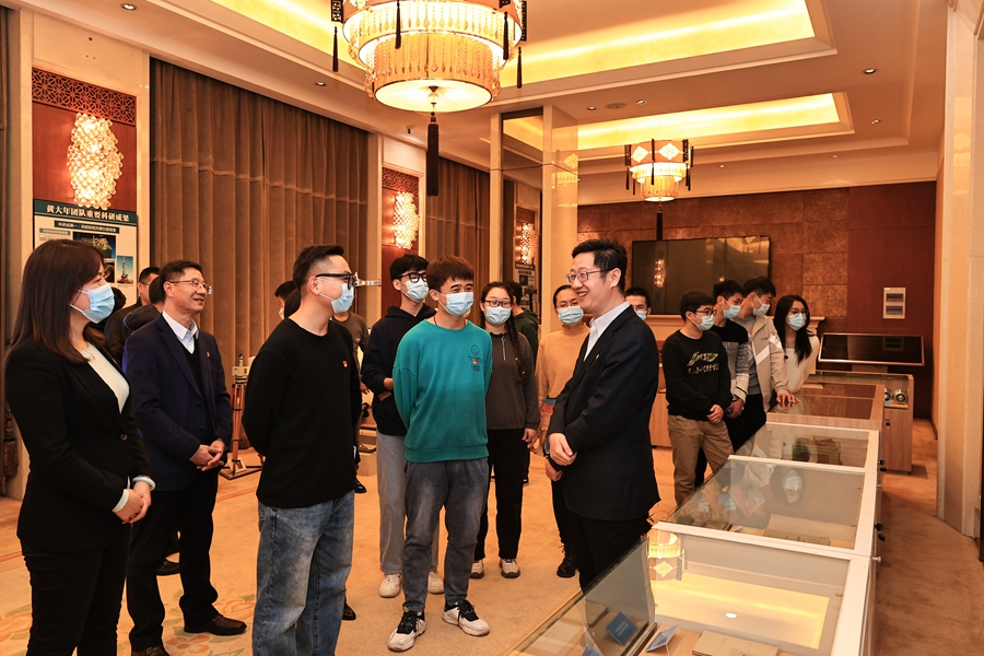 实地参观交流让黄大年精神和地学的辉煌脉络深刻地印在了每个人的心间,油然升起对未来的憧憬。主管研究生工作的副经理冯晅问道:“地学团队建设、学位点建设乃至永利yl23411未来在人才培养方面有着怎样的发展规划?”“有所为,有所不为。”段天璟言简意赅地回答道,“二十大报告为国家的发展指引航向,高校的团队建设在不同的阶段应有相应的战略谋划,以问题为导向,抓住各个团队建设链条上的主要问题。对标国家重大战略需求,做有组织的科学研究,同时有组织地培养人才,拿出自己具有核心竞争力的标志性成果。”抽丝剥茧式的回答为师生在学习工作中,找到学深悟透的方式,让二十大精神听得懂、能领会、可落实。