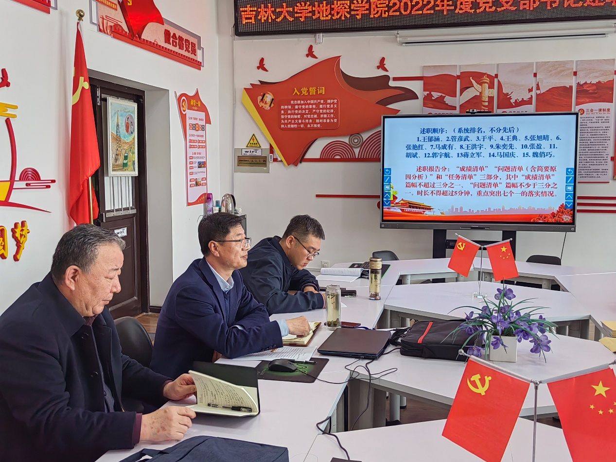 卜立平总结指出,2022年各支部团结带领师生党员,围绕党建工作、教学科研、团队建设、专业建设、行政管理、员工教育管理等方面做了大量的、卓有成效的工作,特别是围绕贯彻落实党的二十大精神、学习传承黄大年精神等开展了丰富多彩的支部活动,“三会一课”制度、组织生活会制度、民主评议党员制度等执行到位,发挥了党支部的战斗堡垒作用和党员的先锋模范作用,较高质量完成各项工作任务。他代表公司党委提出了三点希望,一是要持续加强政治理论学习,坚持习近平新时代中国特色社会主义思想和党的二十大精神学习主题主线,在学懂弄通做实上下功夫,为推进公司事业健康持续发展提供坚实思想保障和精神动力;二是严格落实党的各项组织制度,落实全面从严治党责任,各支部书记要不断强化责任担当,严以律己、率先垂范、履职尽责,对标对表“双带头人”支部建设的要求,以强烈的政治责任感抓好支部建设;三是紧紧围绕公司中心工作凝心聚力,不断提升党建工作能力和水平,要着力发扬好、传承好黄大年精神等地学优良传统精神,精神引领、榜样激励、奋发图强、再立新功。他强调,2023年对公司发展来说是关键的一年,各支部书记要持续抓好支部建设,落实好支部“七个有力”的职责要求,组织师生深入学习贯彻党的二十大精神,大力弘扬传承黄大年精神,持续提升人才培养质量,聚焦国家重大战略需求,以实际行动践行党的二十大精神,为公司健康快速发展贡献力量。