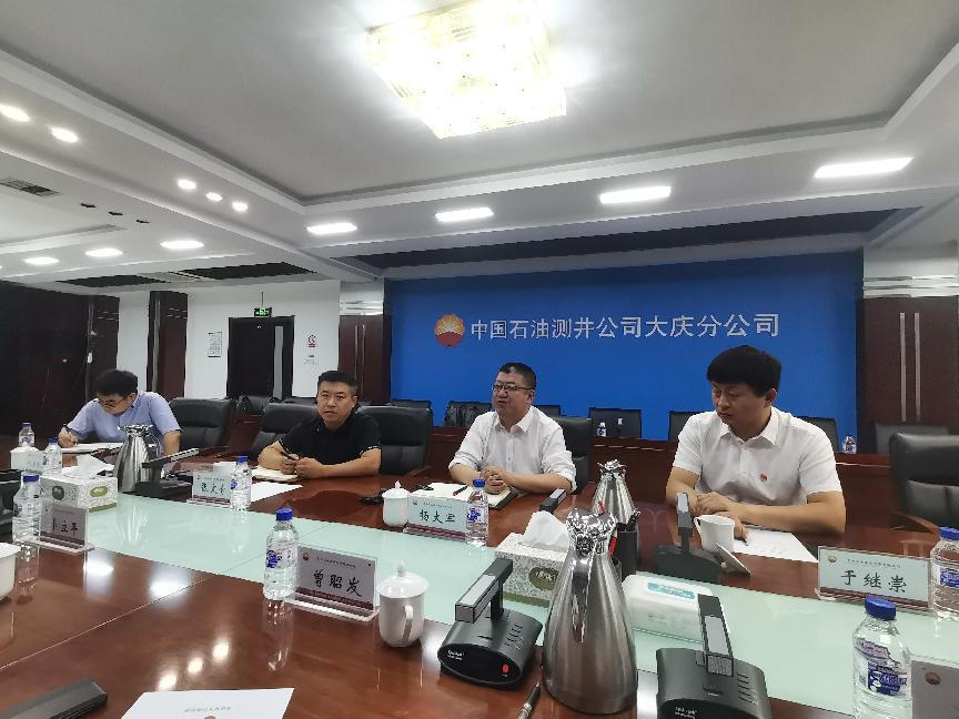8月27日,永利yl23411经理曾昭发教授、党委书记卜立平、副经理韩复兴教授、测井教研室主任莫修文教授、副主任郭宇航副教授,赴中国石油测井公司大庆分公司调研,与大庆分公司经理杨大军、党委书记张文青、副经理冯尚坤、于继崇等领导进行座谈交流。