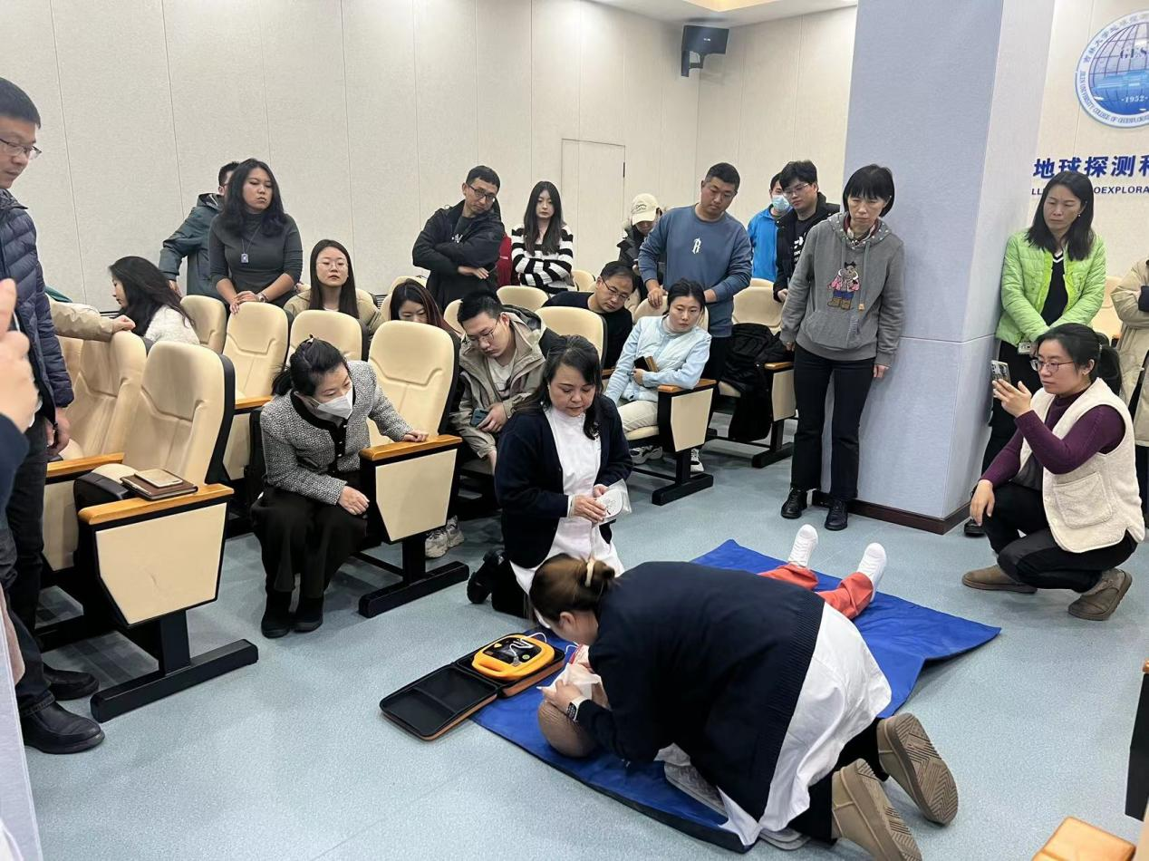 培训中,于巍红老师围绕突发事件应急救援进行现场讲解,详细讲授了基本救护常识、心肺复苏(CPR)操作流程、自动体外除颤器(AED)的使用方法等有关应急救护知识,并现场进行急救技能实操训练。通过现场讲解和实际操作练习,公司师生了解了如何判断是否丧失意识、判断有无自主呼吸、安置正确体位等应急救护相关知识,掌握了胸外按压心脏、清理口腔异物、人工呼吸等救护基本动作要领,在场师生受益匪浅。