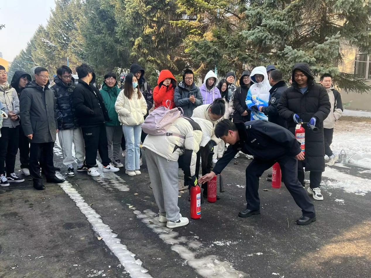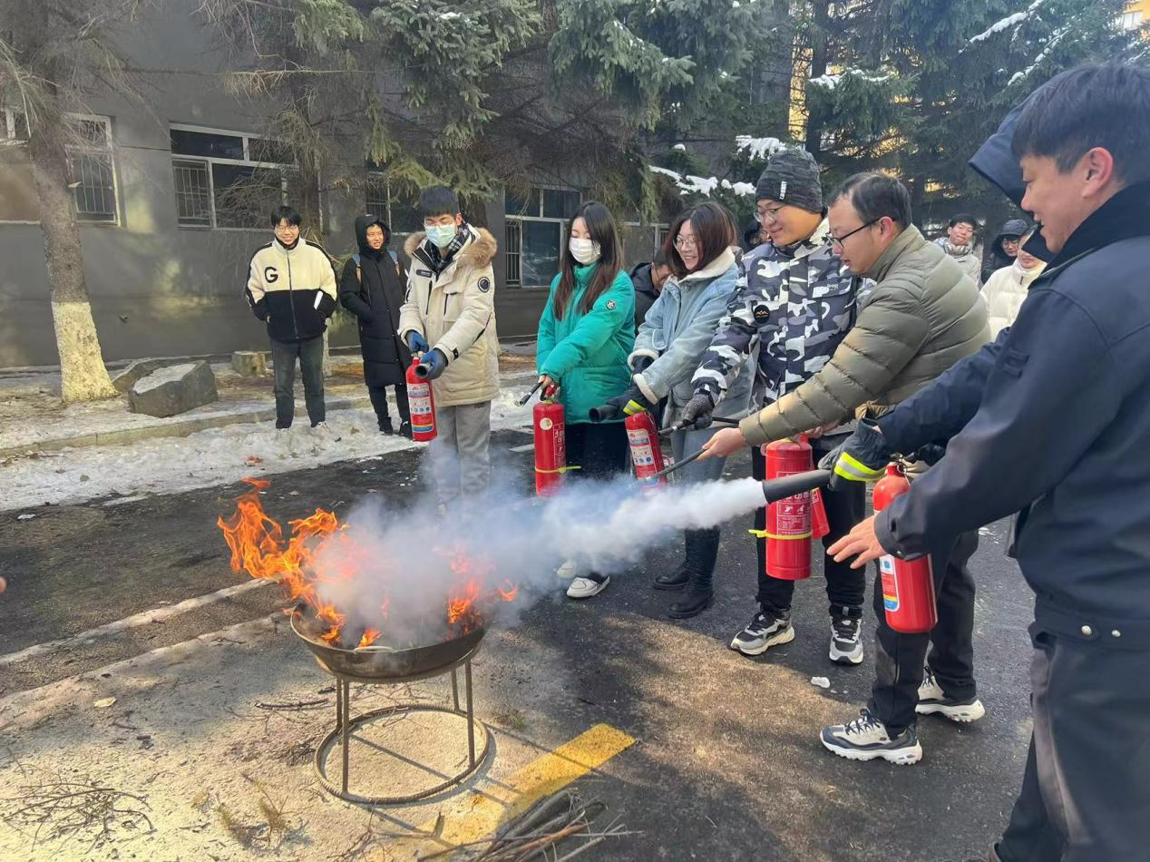 在保卫办的指导下,公司师生有序前往朝阳校区图书馆南侧,唐小兵科长和保卫办工作人员为现场师生详细讲解了不同类别灭火器的正确使用方法并进行实际演示,师生们也积极踊跃的参与灭火实操。党委书记卜立平强调,公司应定期开展消防演练,不断提高师生消防安全意识,共同营造一个安全、和谐的校园环境。