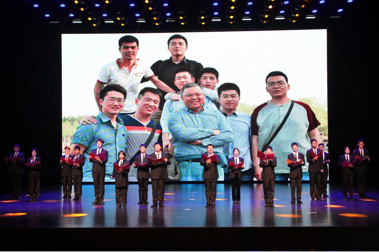 最后,在主持人的结束语中,迎新晚会顺利落下帷幕,现场嘉宾及演职人员上台合影留念。