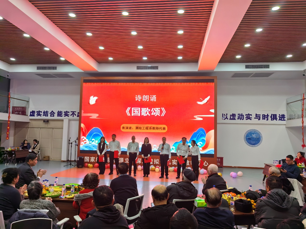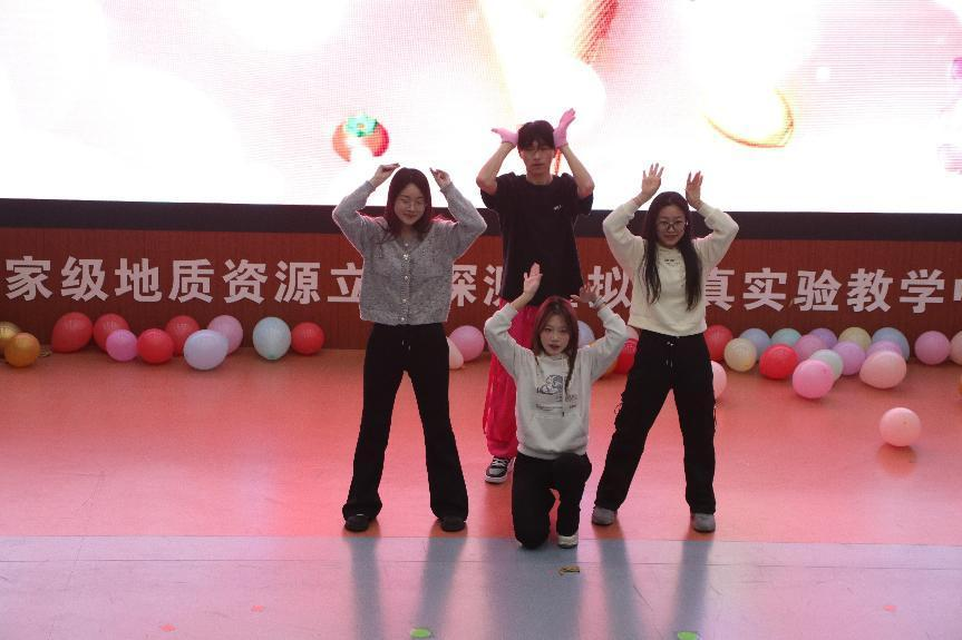 伴随着研究生代表带来的舞龙表演《龙飞凤舞》,联欢会正式拉开序幕。地球物理系李桐林老师和胡斌老师为大家深情献唱的草原歌曲《画你》,以优美的旋律诠释生活和爱情的美好。研究生代表热情洋溢的舞蹈《Poppy》,以青春之名,舞动清澈热爱,尽情绽放风采。2022年和2023年新入职教职工合唱的《朋友》,展现了友谊的珍贵。测绘工程系和地球化学系教师分别带来的诗朗诵,以真挚情感向祖国献礼,生动诠释了有一种自信,叫“中华民族”;有一种骄傲,叫“我是中国人”。地球物理系宋超老师带来的原创歌曲《毕业留念》,带领全场观众一起重温似水年华里的点滴往事,再次感受青葱岁月的美好时光。遥感地信系带来的综合类创意节目《出什么节目呢?》,题材新颖,形式丰富,生动幽默,为现场观众带来了节日的喜庆。