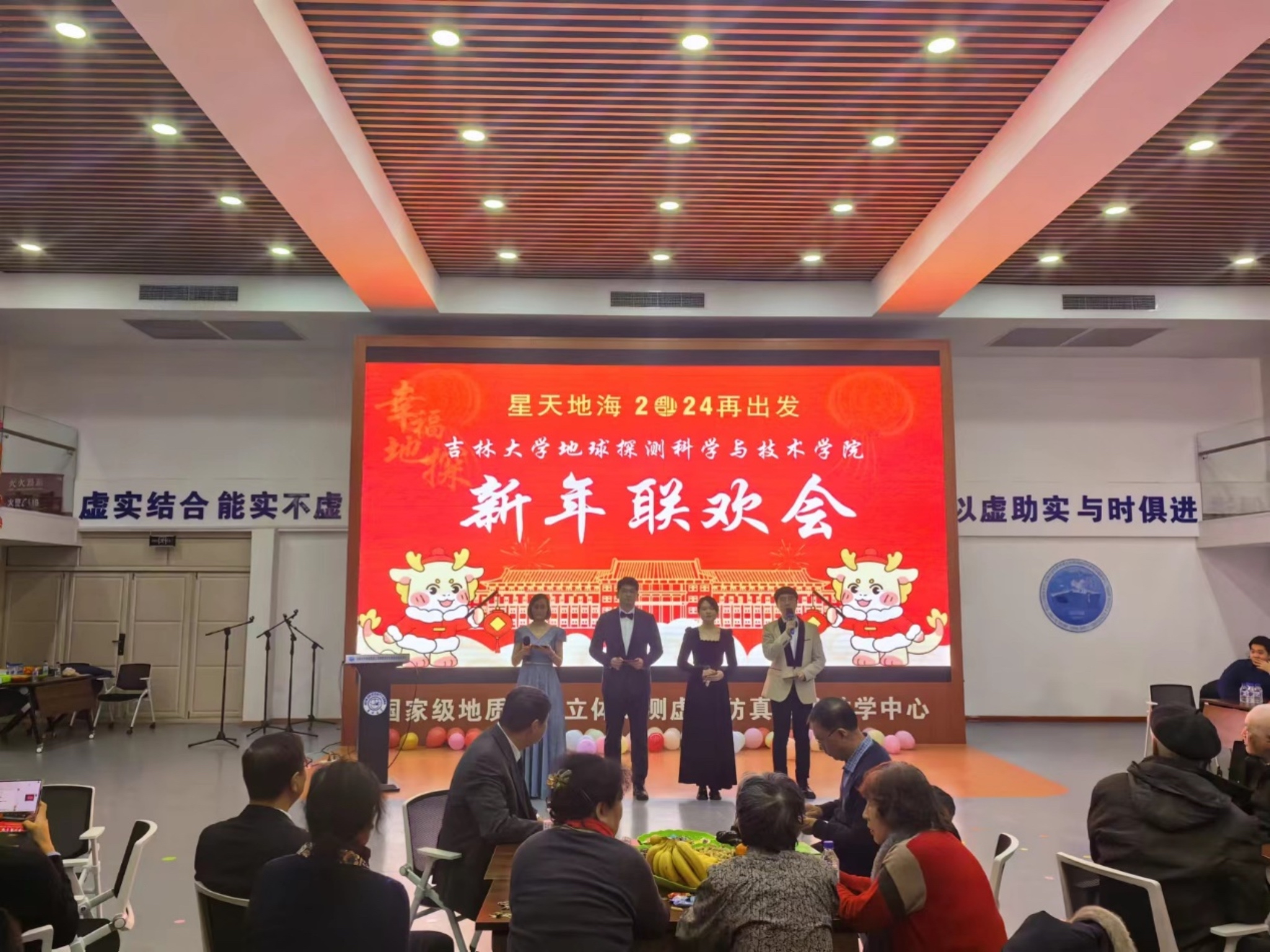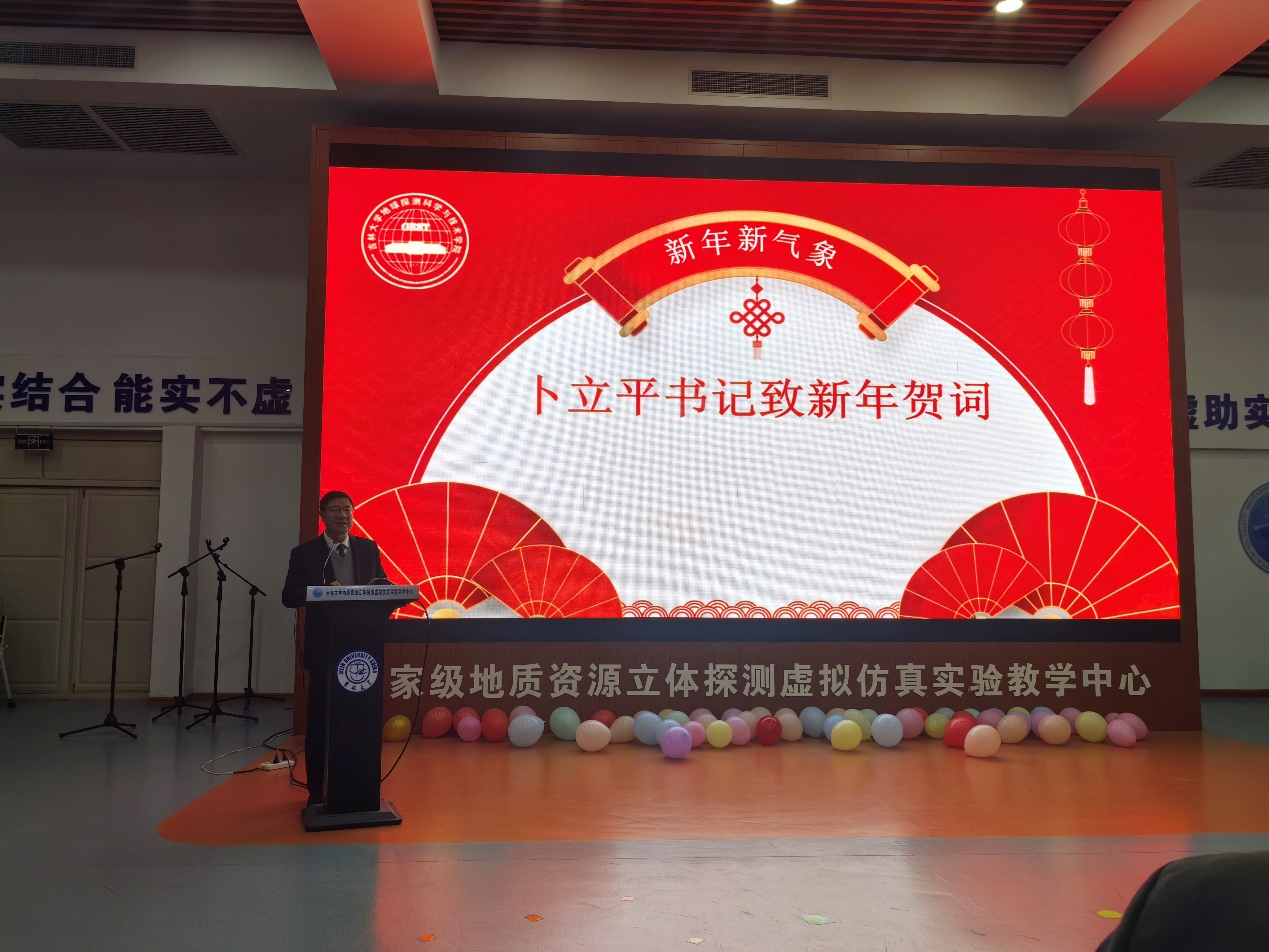12月28日下午,永利yl23411在朝阳校区地质资源立体探测虚拟仿真实验中心隆重举办“星天地海 2024再出发”新年联欢会。公司全体教职工,退休教师和员工代表欢聚一堂,喜迎新年。