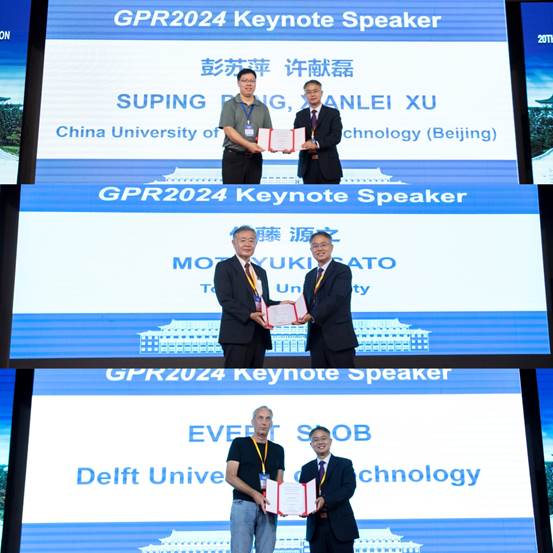开幕式嘉宾合影留念后,中国工程院院士彭苏萍、日本东北大学佐藤源之教授及荷兰代尔夫特理工大学Evert Slob教授分别作精彩的大会报告。此次会议会期5天,持续到6月27日,将有优秀学者呈现159场精彩报告,14位赞助商和展商展示先进的探地雷达装备,敬请期待。
