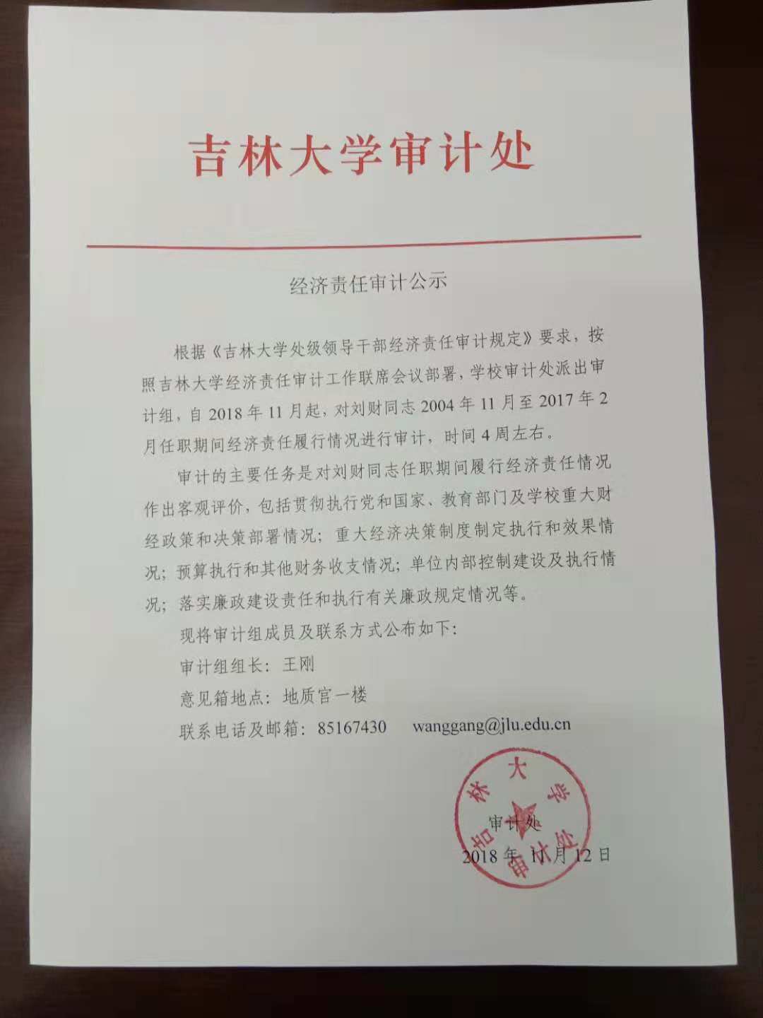 关于刘财同志离任审计的公示