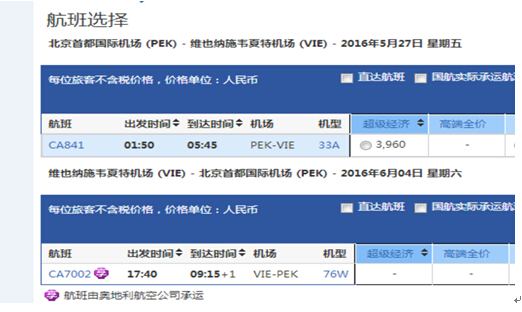 往返航线: