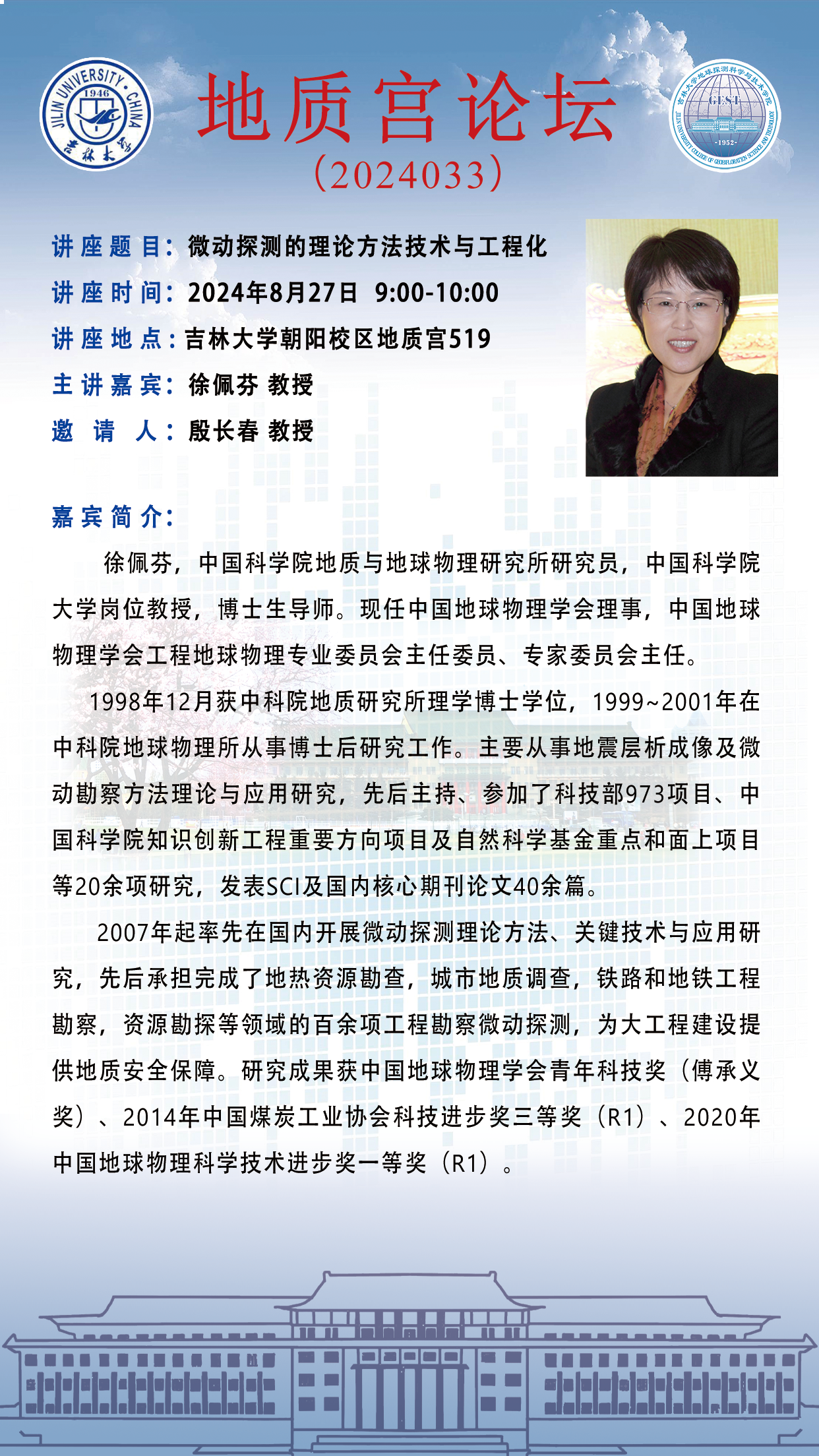 永利yl23411·地质宫论坛(2024033)—中国科公司大学徐佩芬教授学术报告