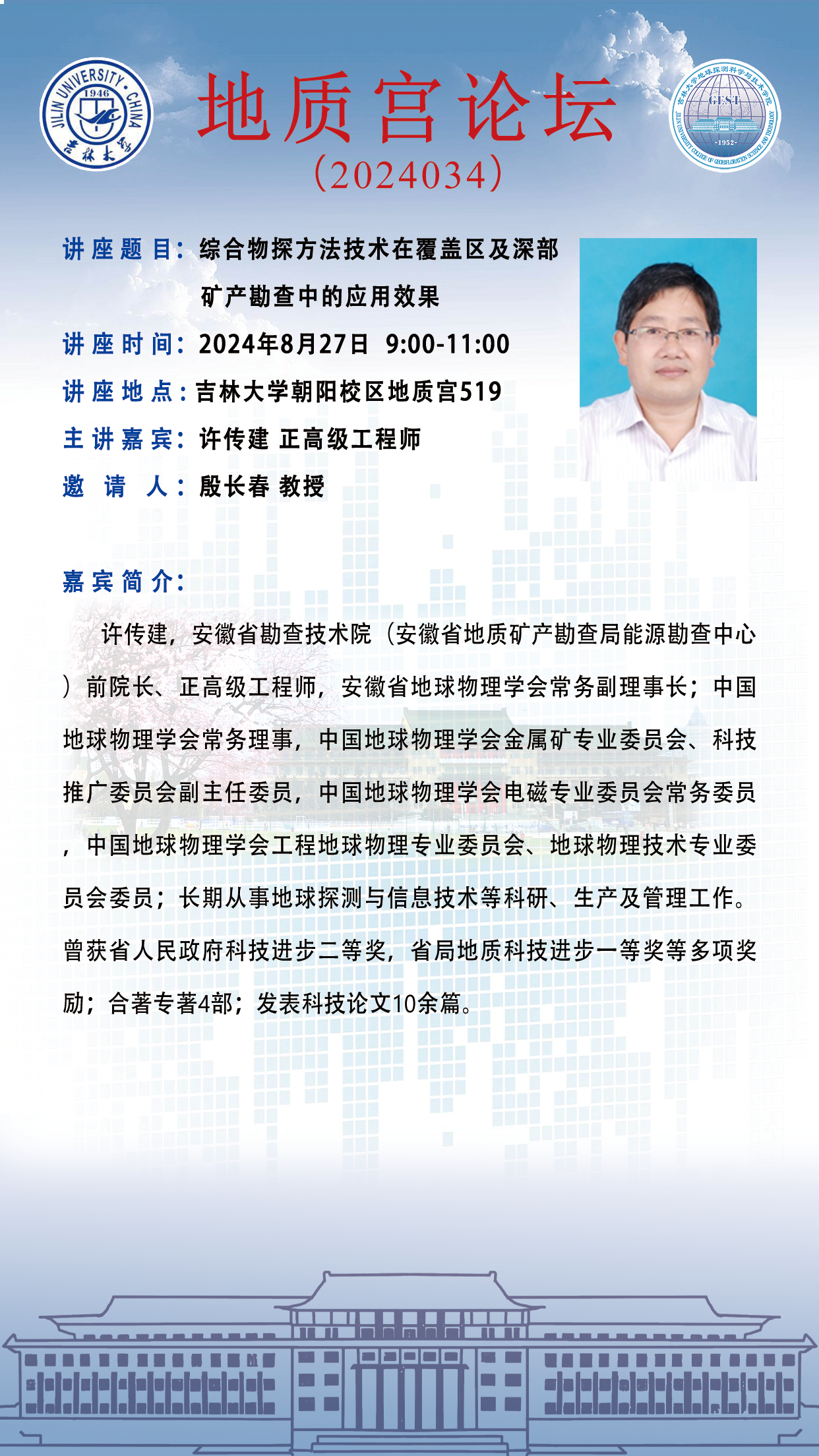永利yl23411·地质宫论坛(2024034)—安徽省勘查技术院许传建正高级工程师学术报告