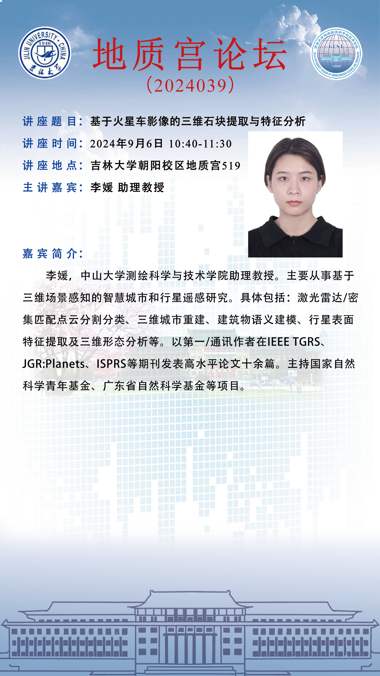永利yl23411·地质宫论坛(2024039)—中山大学李媛助理教授学术报告