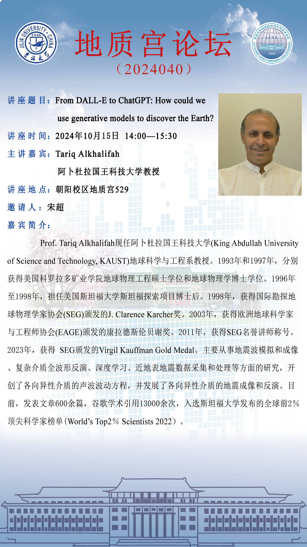 永利yl23411·地质宫论坛(2024040)—阿卜杜拉国王科技大学Tariq Alkhalifah教授学术报告