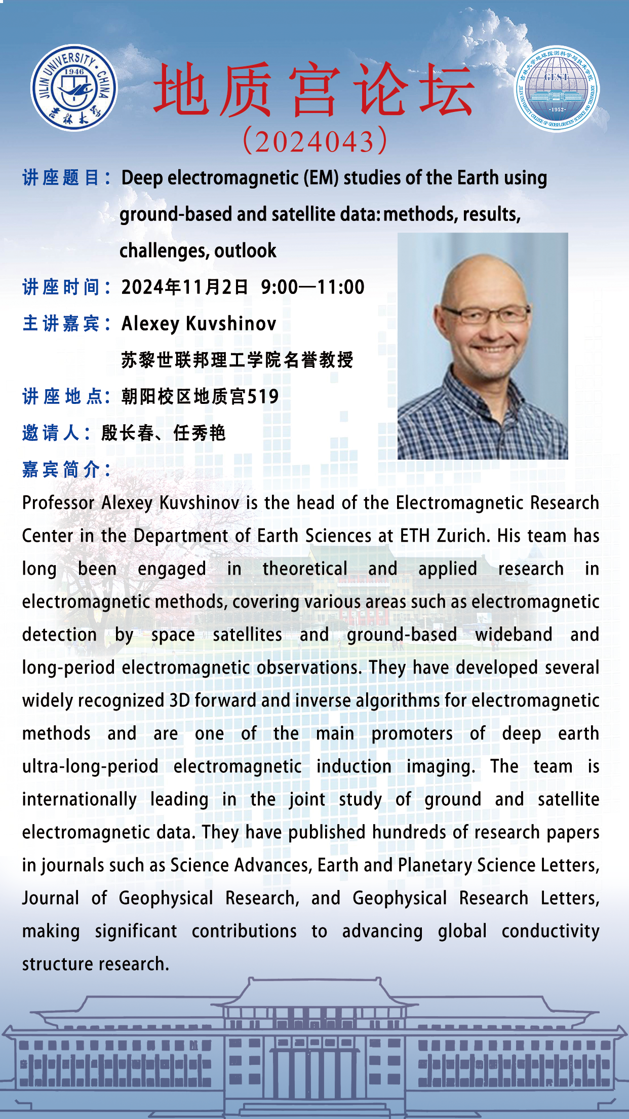 永利yl23411·地质宫论坛(2024043)—苏黎世联邦理工公司名誉教授Alexey Kuvshinov学术报告