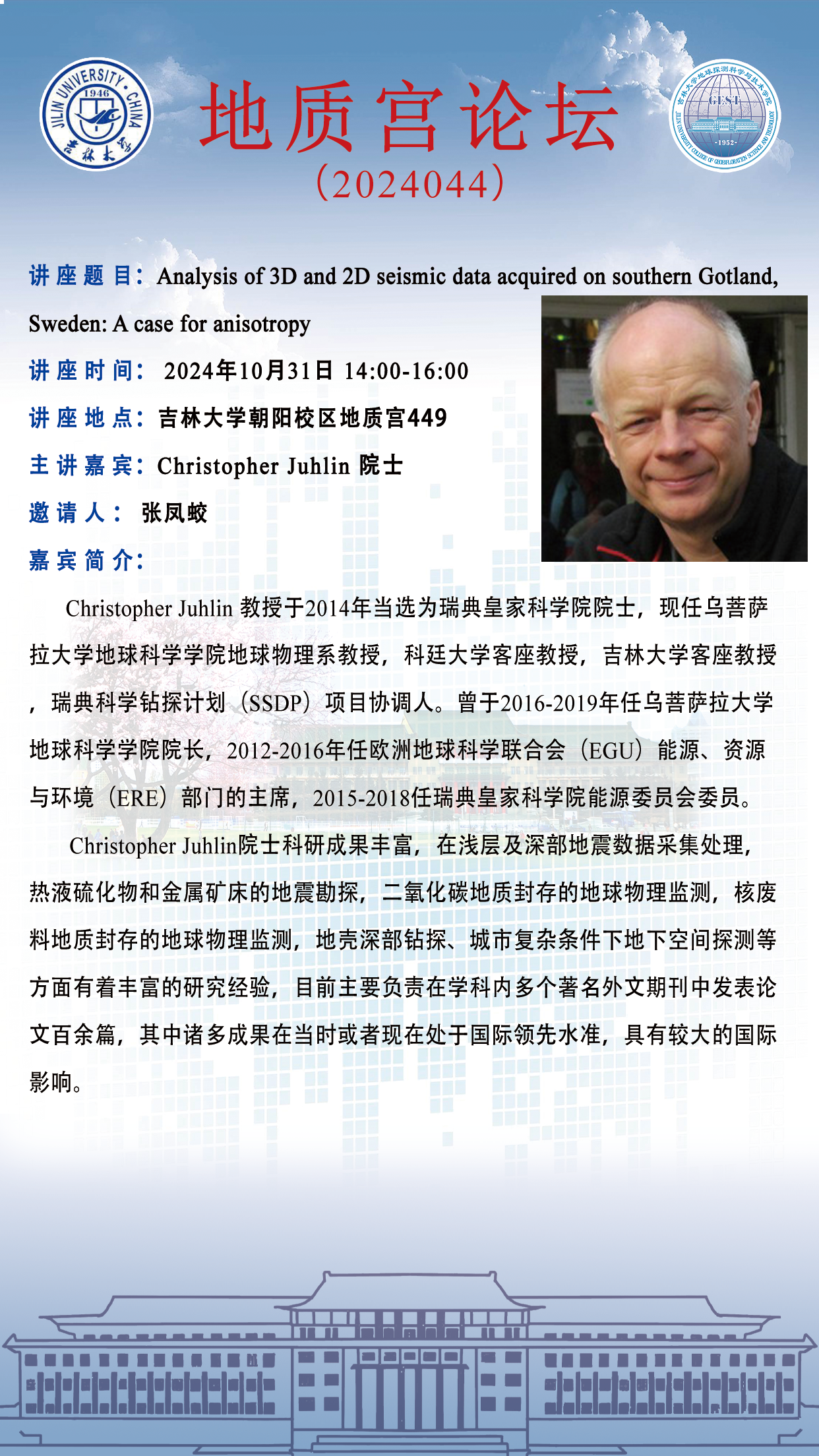 永利yl23411·地质宫论坛(2024044)—瑞典皇家科公司院士Christopher Juhlin学术报告