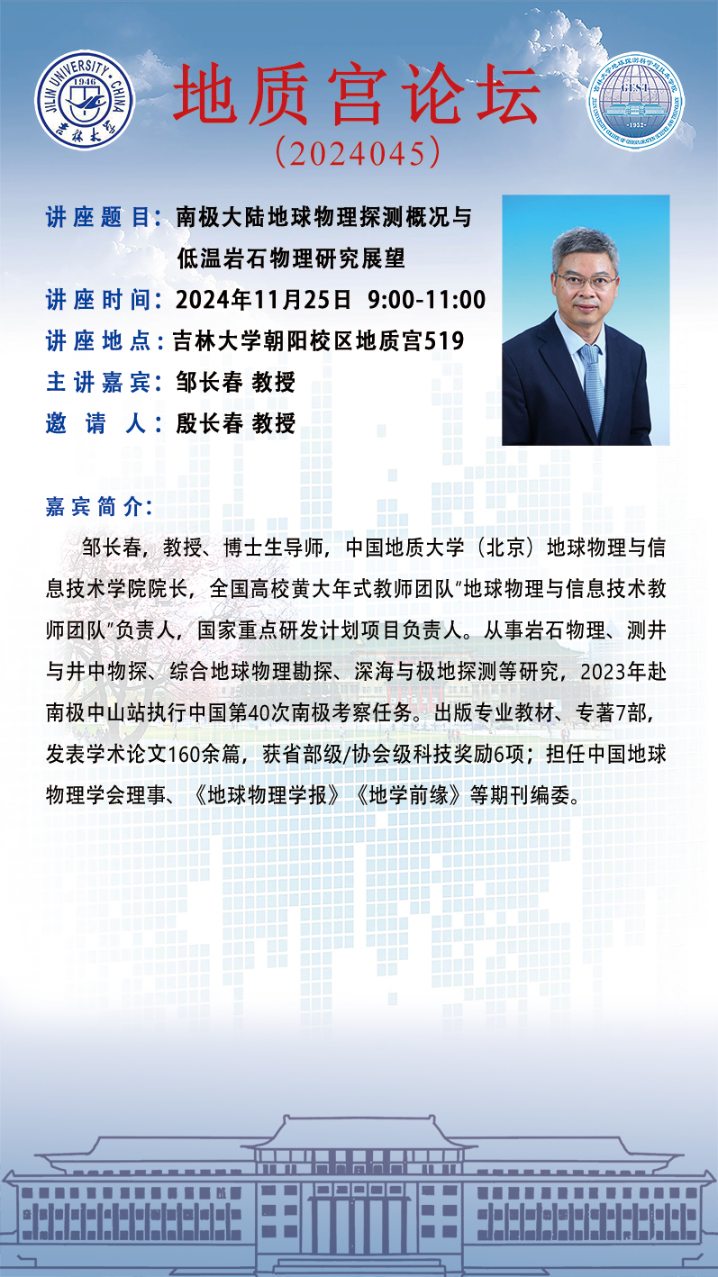 永利yl23411·地质宫论坛(2024045)—中国地质大学(北京)邹长春教授学术报告