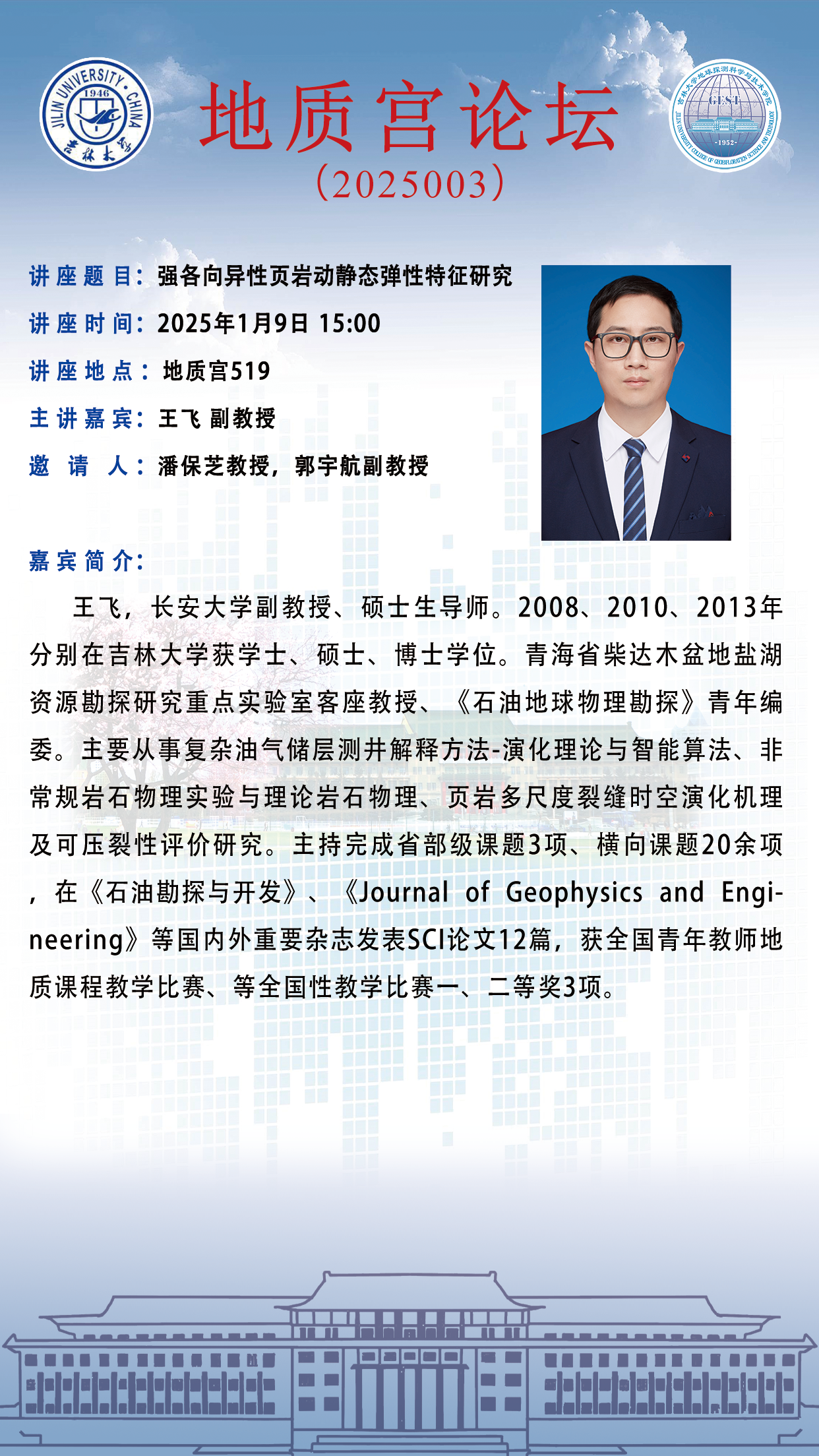 永利yl23411·地质宫论坛(2025003)—长安大学王飞副教授学术报告