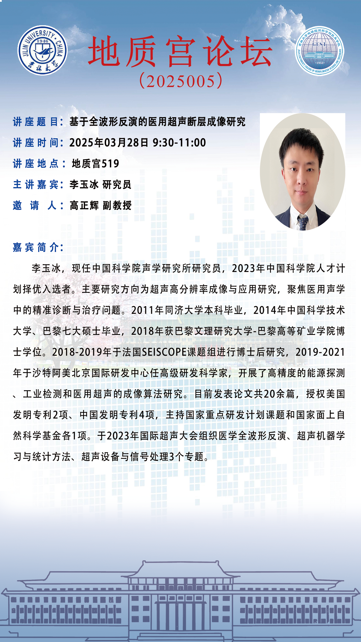 永利yl23411·地质宫论坛(2025005)—中国科公司声学研究所李玉冰研究员学术报告