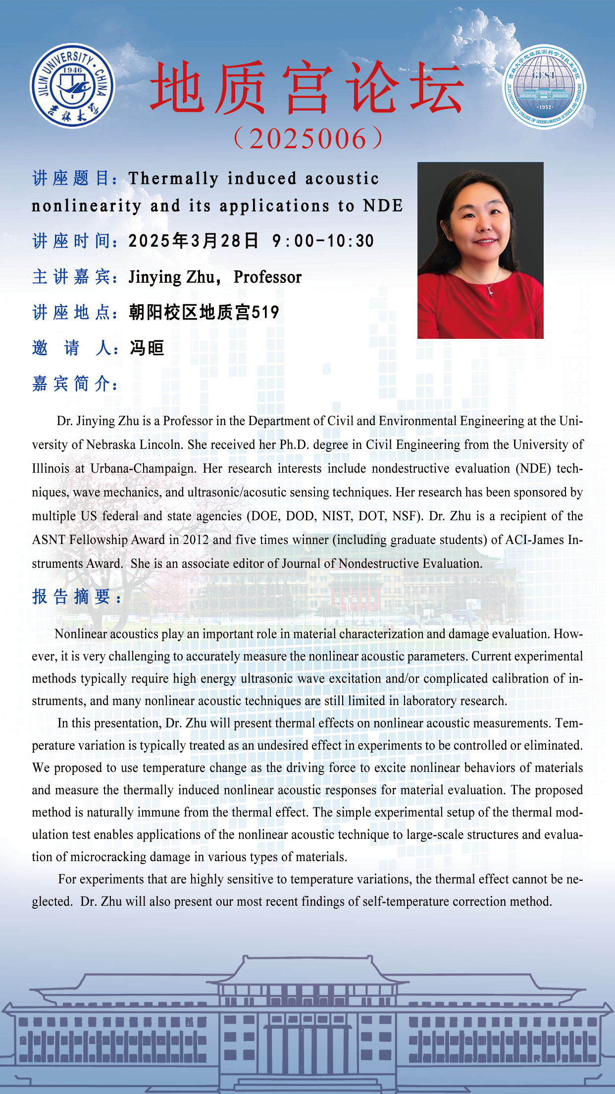 永利yl23411·地质宫论坛(2025006)—内布拉斯加大学林肯分校朱金颖教授学术报告