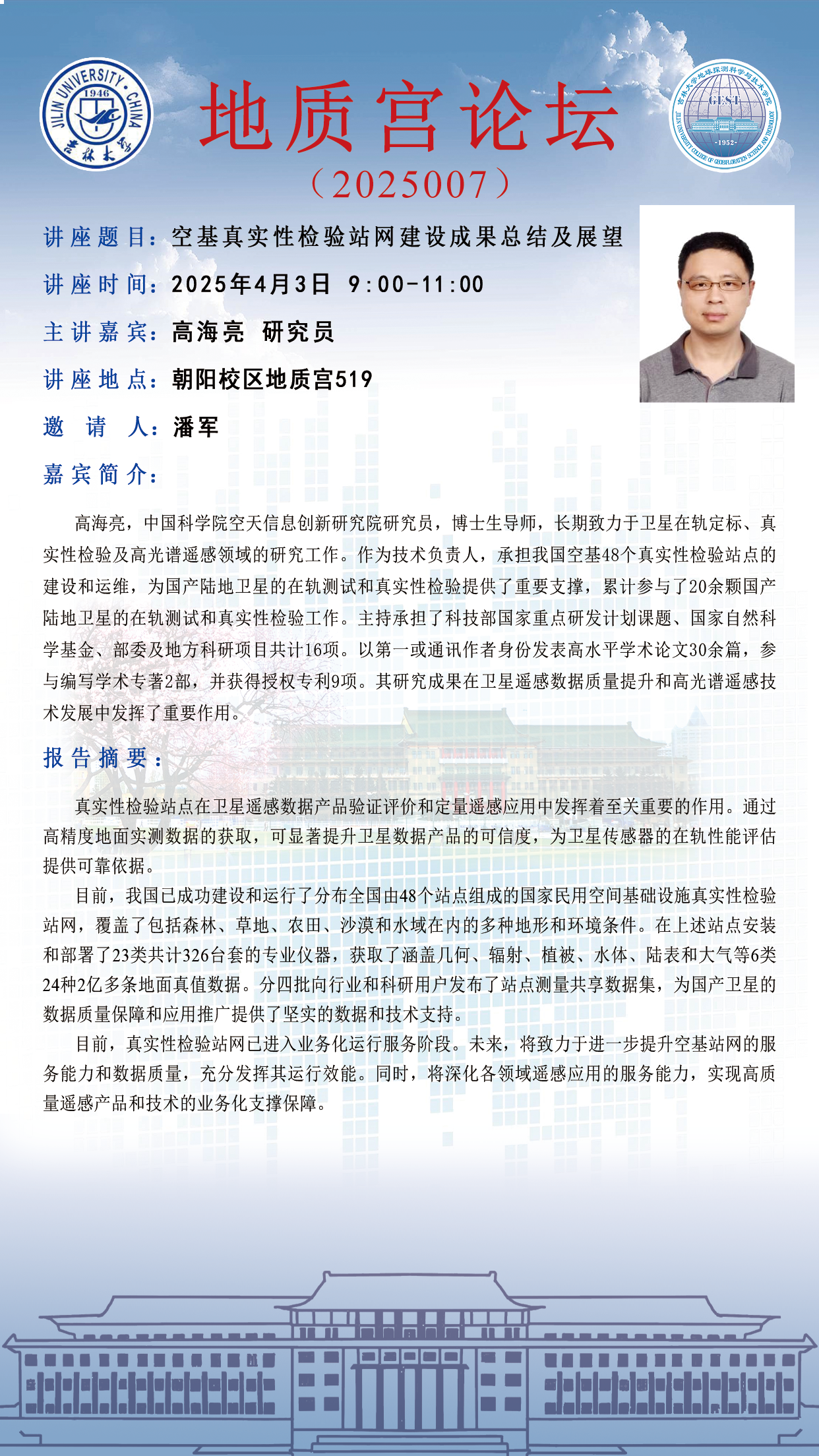 永利yl23411·地质宫论坛(2025007)—中国科公司空天信息创新研究院高海亮研究员学术报告