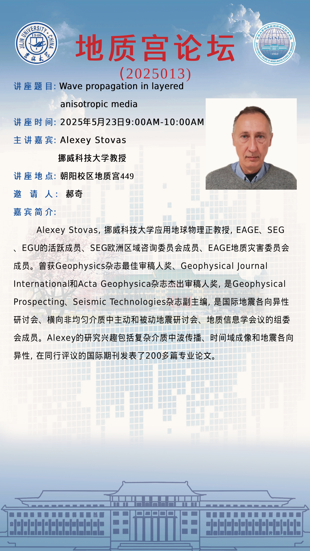 永利yl23411·地质宫论坛(2025013)—挪威科技大学Alexey Stovas教授学术报告