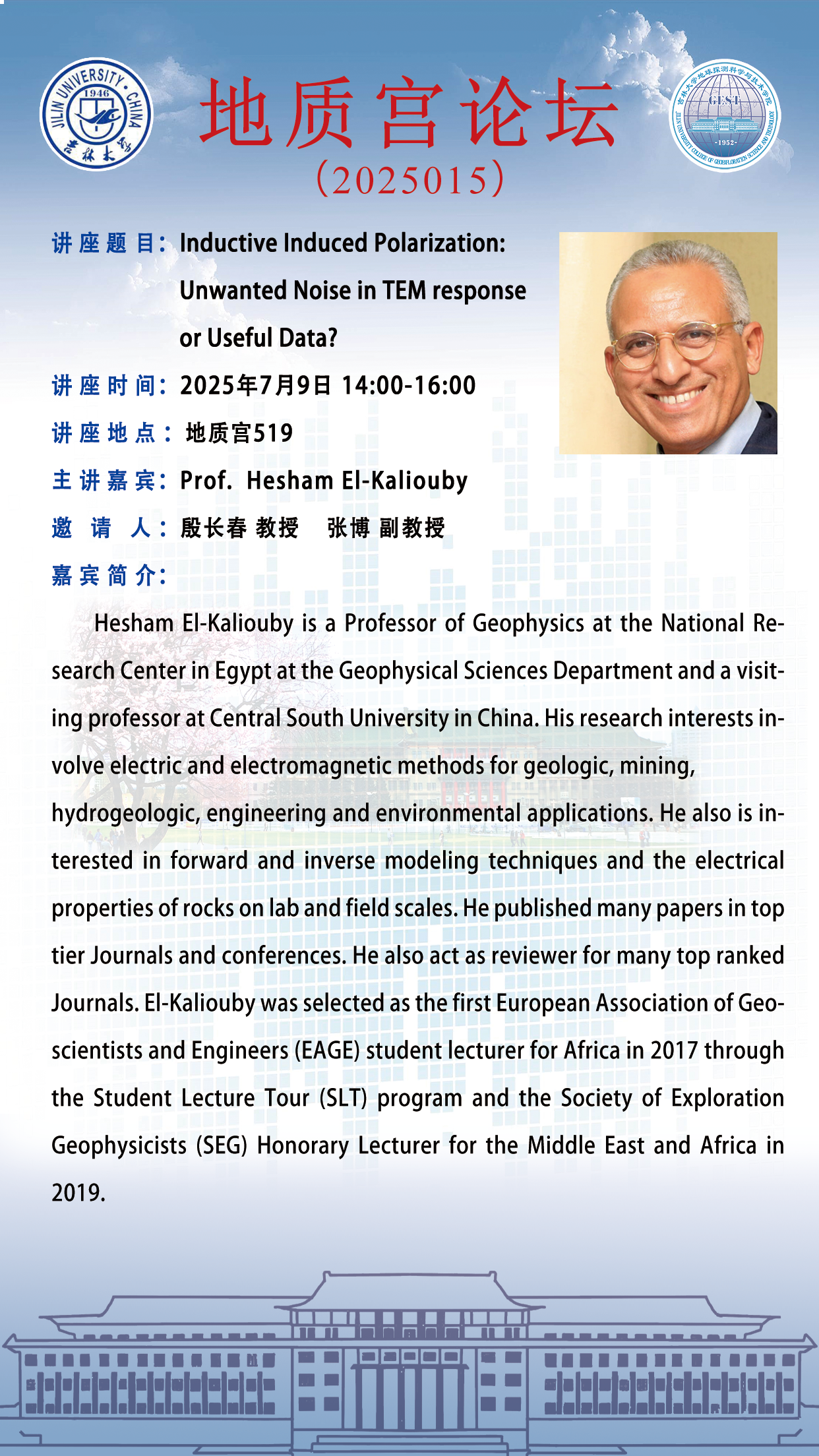 永利yl23411·地质宫论坛(2025015)—埃及国家研究中心Hesham El-Kaliouby教授学术报告