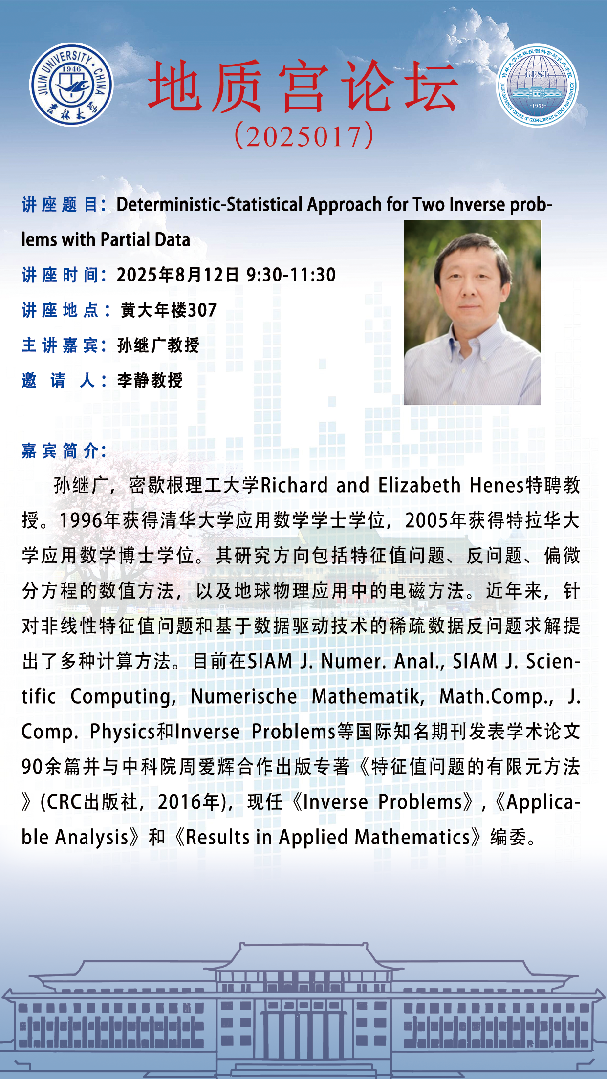 永利yl23411·地质宫论坛(2025017)—密歇根理工大学孙继广教授学术报告