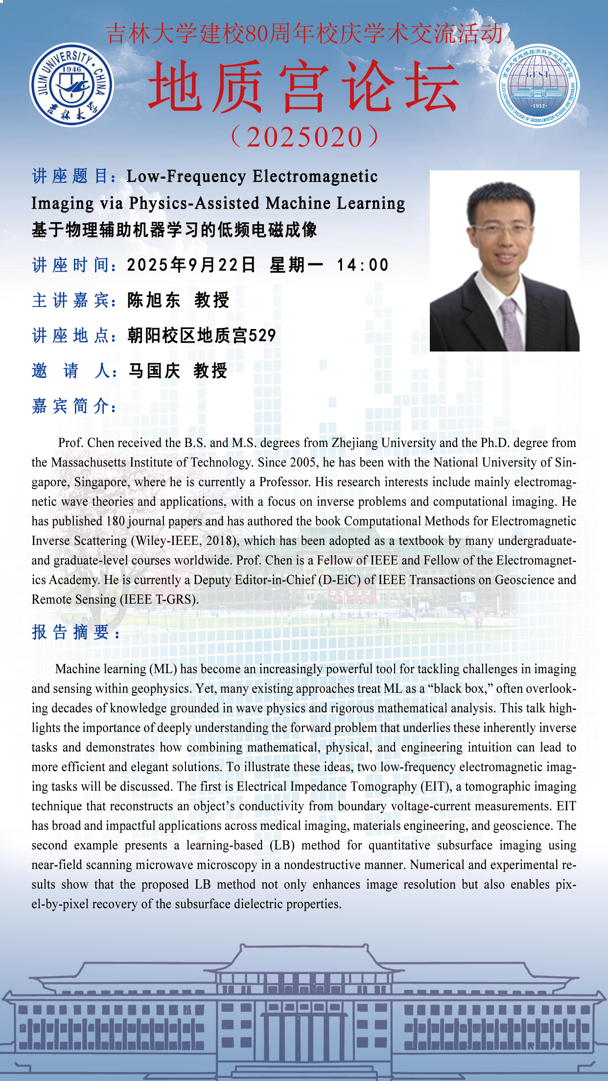 永利yl23411·地质宫论坛(2025020)— 新加坡国立大学陈旭东教授学术报告
