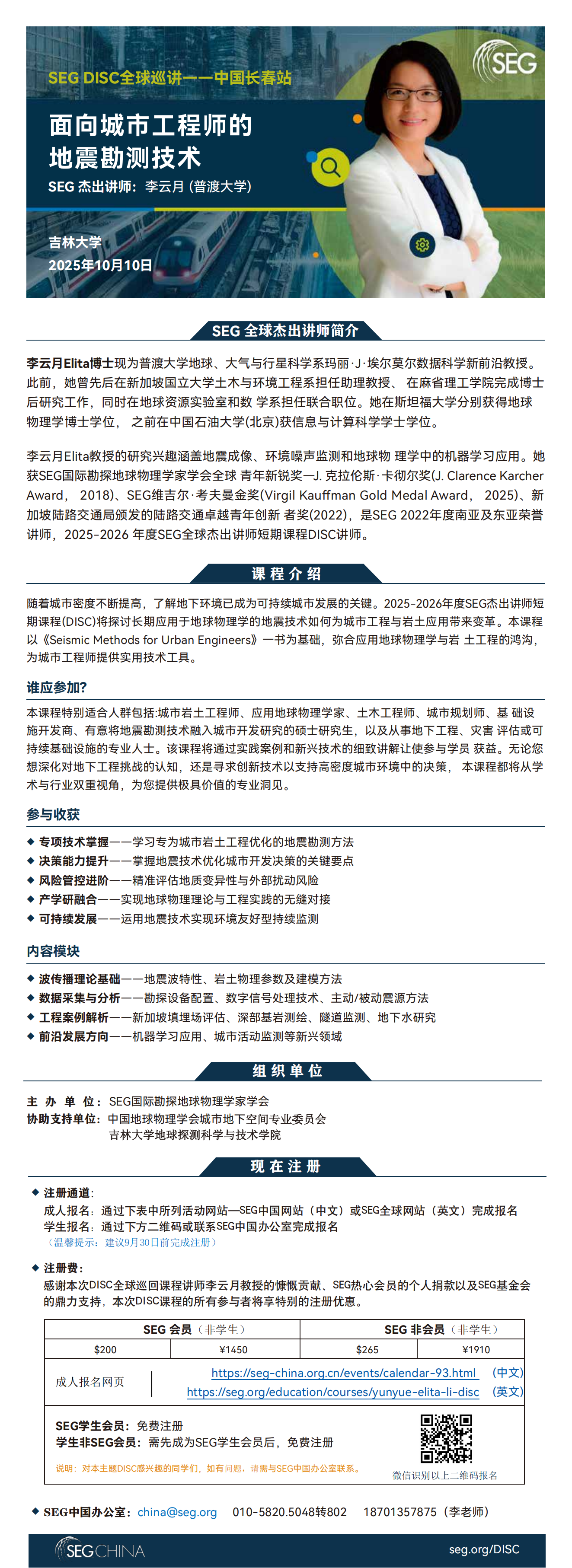 2025 SEG杰出讲师短期课程 (DISC)—全球巡讲之中国站 | 面向城市工程师的地震勘测技术