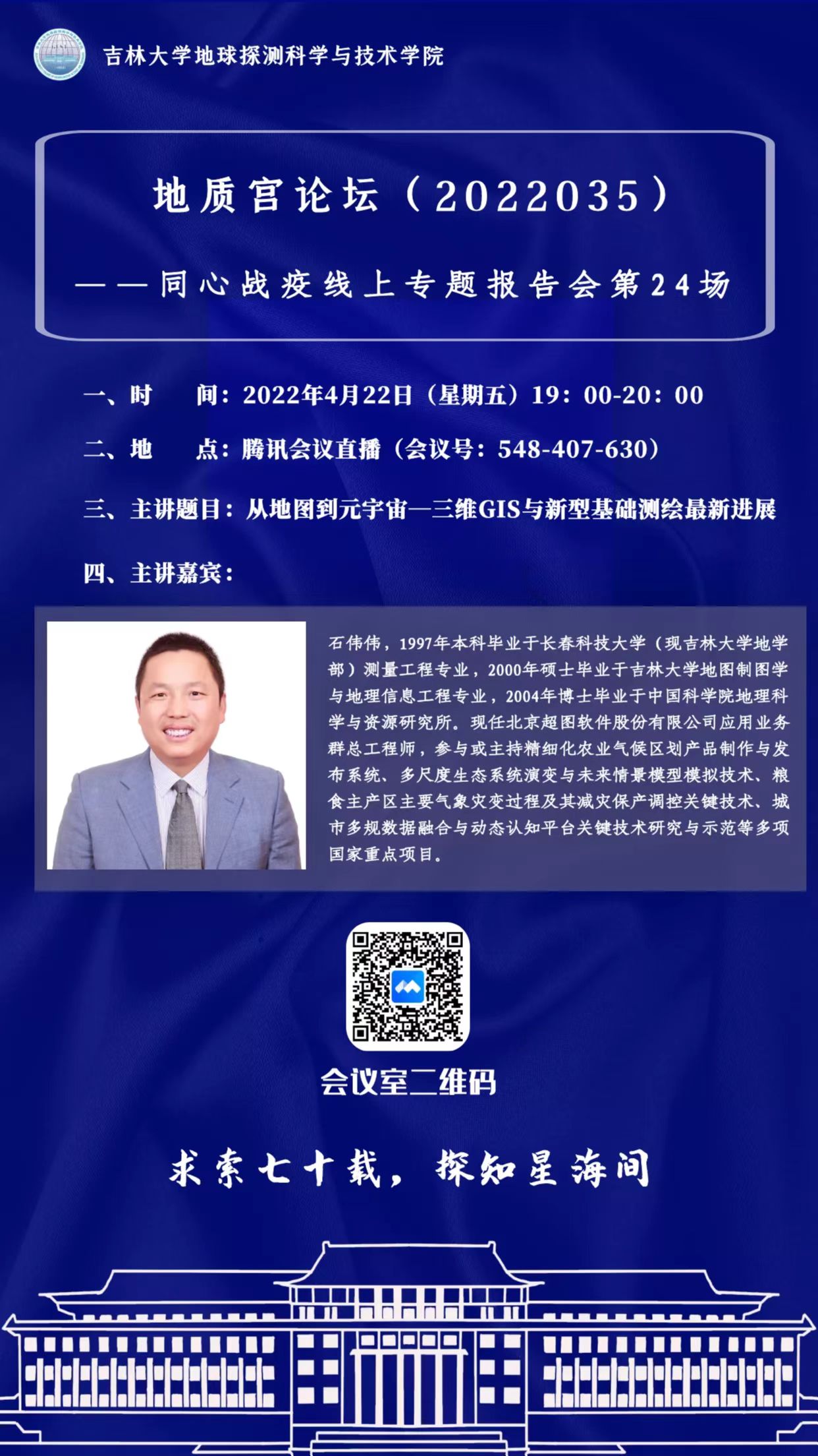 永利yl23411·地质宫论坛(2022035)—北京超图软件股份有限公司应用业务群总工程师石伟伟博士学术报告