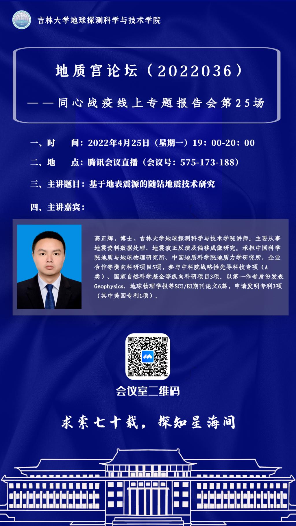永利yl23411·地质宫论坛(2022036)—永利yl23411高正辉博士学术报告