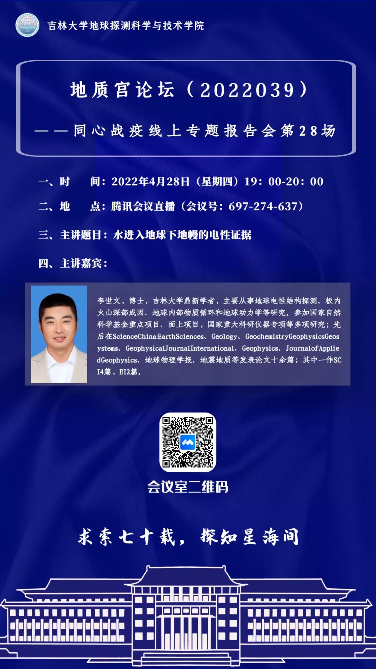 永利yl23411·地质宫论坛(2022039)—永利yl23411李世文博士学术报告